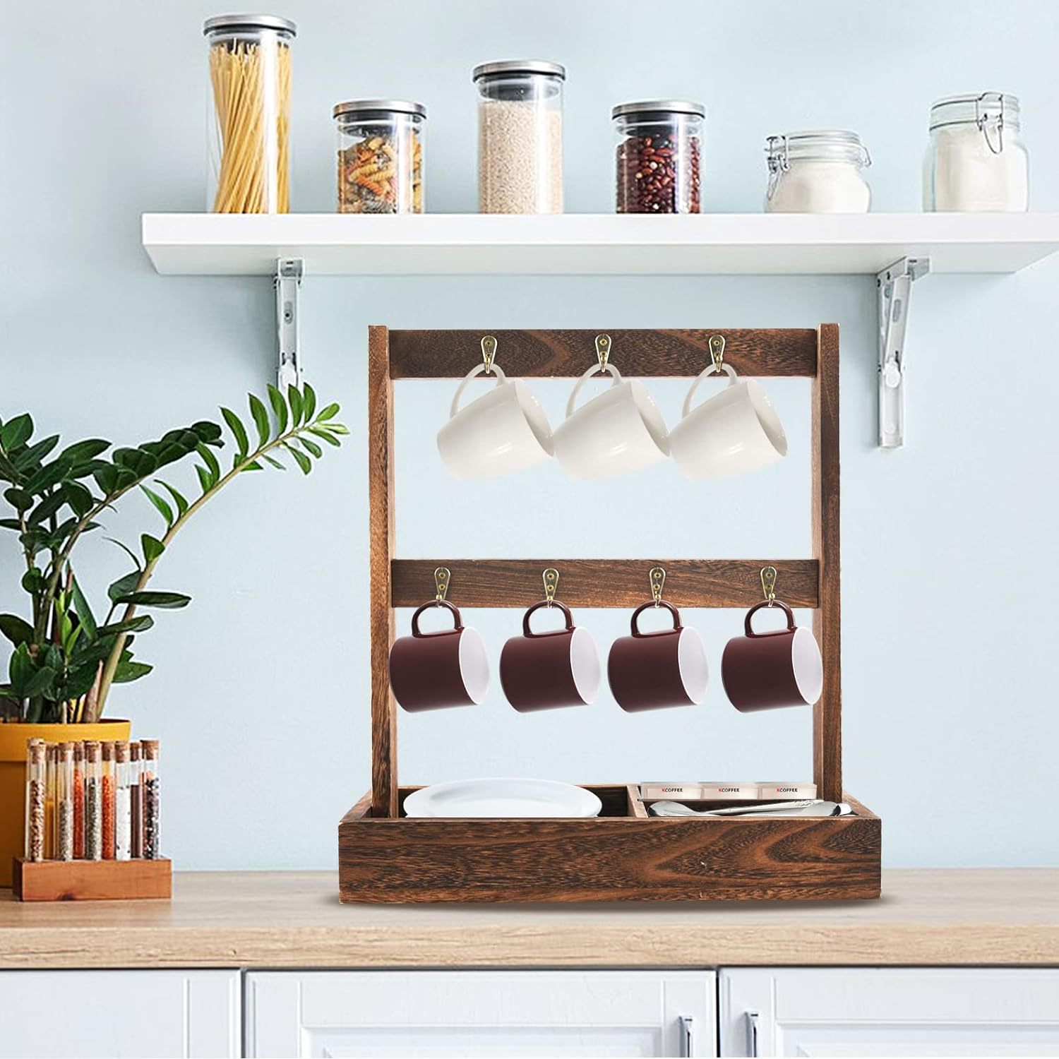 소박한 스타일 커피 컵 홀더 머그잔 양면 후크 홀더 주방 조리대 식기 컵 나무 보관함스토어 가기