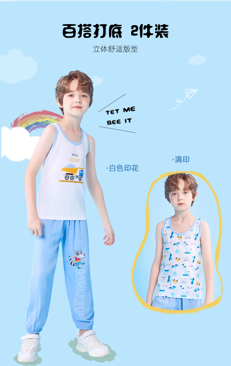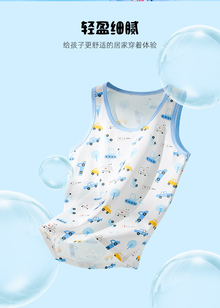 봄 여름 어린이 A급 순면 조끼 소년 소녀용, 중소형 어린이용, 이너웨어, 얇은 상의, 민소매 티셔츠