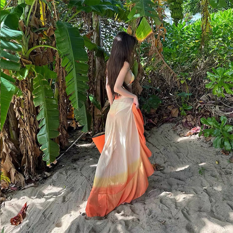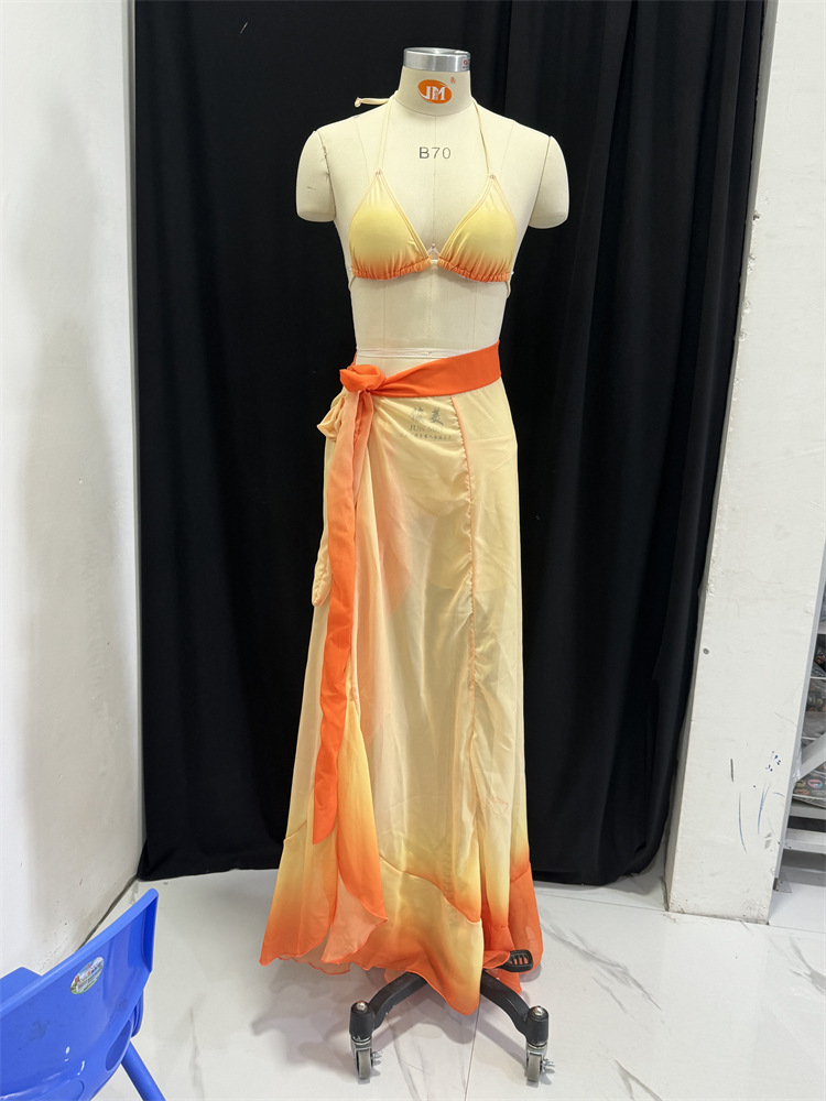 2024 새로운 여성 패션 스플릿 컬러 매칭 3 피스 수영복 작은 가슴 모여 뜨거운 소녀 해변 온천 휴가