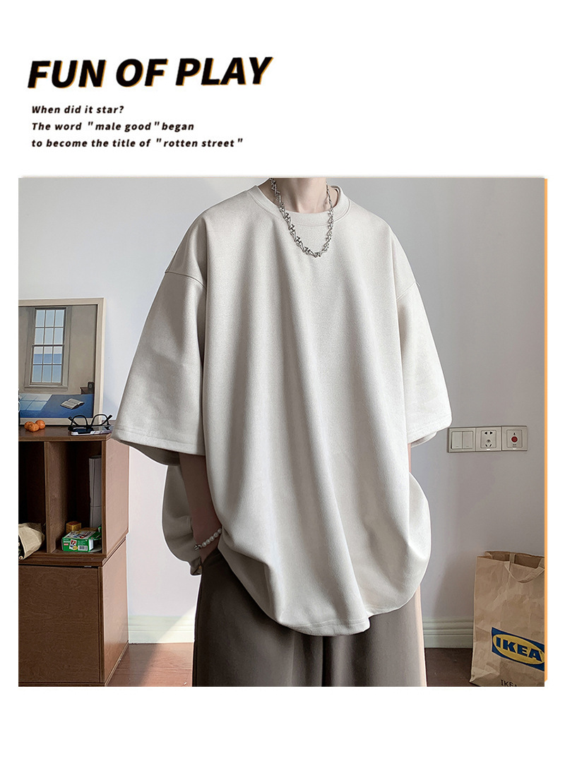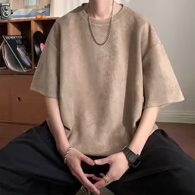 헤비 솔리드 컬러 반팔 티셔츠 남성 여름 2025 뉴 아메리칸 레트로 남성 스웨이드 루즈 티셔츠스토어 가기