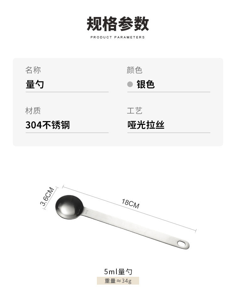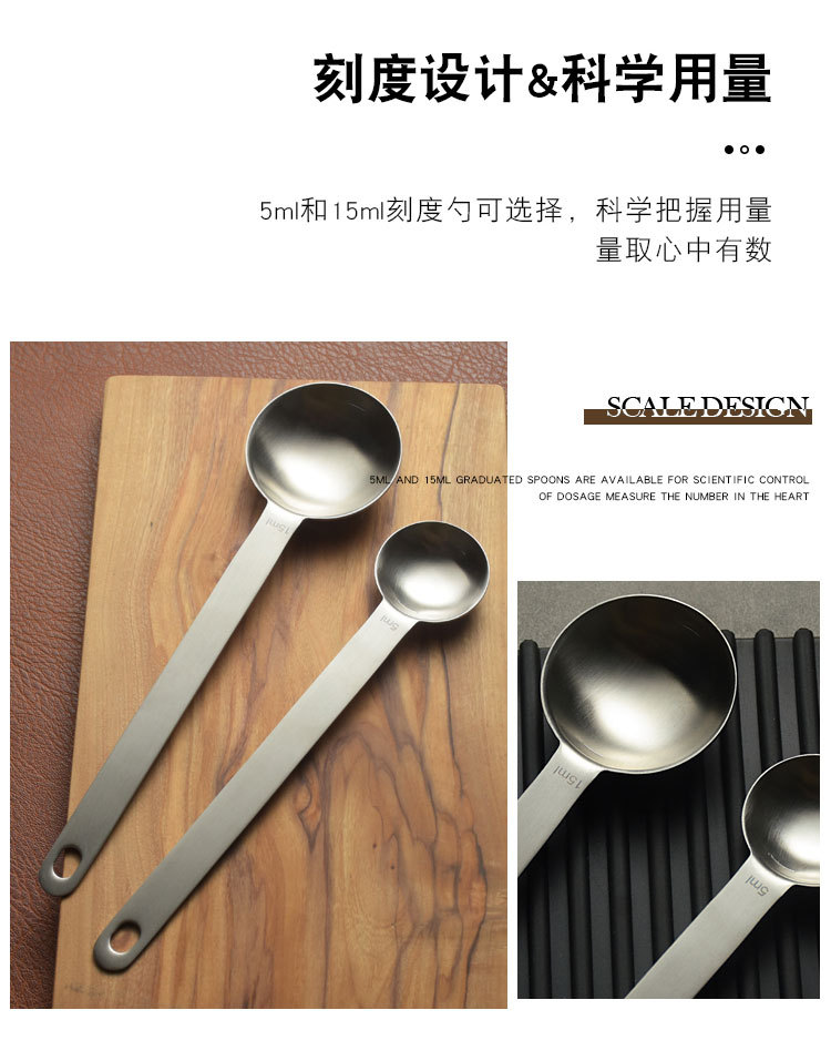 304 스테인리스 스틸 커피콩 계량스푼, 긴 손잡이 커피스푼, 분유스푼, 차스푼, 베이킹용 15ml 계량스푼(눈금 표시)