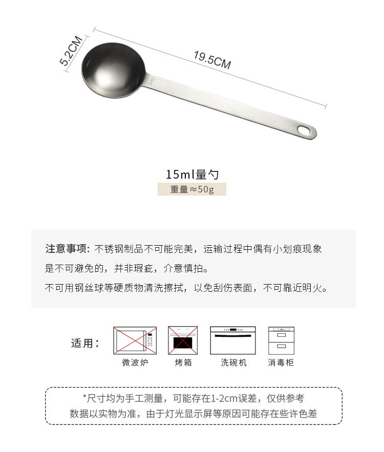 304 스테인리스 스틸 커피콩 계량스푼, 긴 손잡이 커피스푼, 분유스푼, 차스푼, 베이킹용 15ml 계량스푼(눈금 표시)스토어 가기