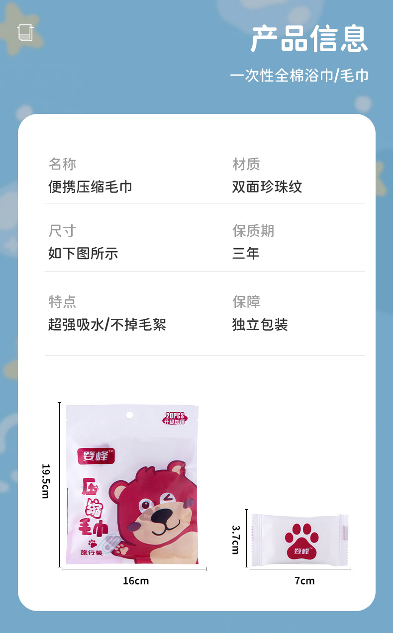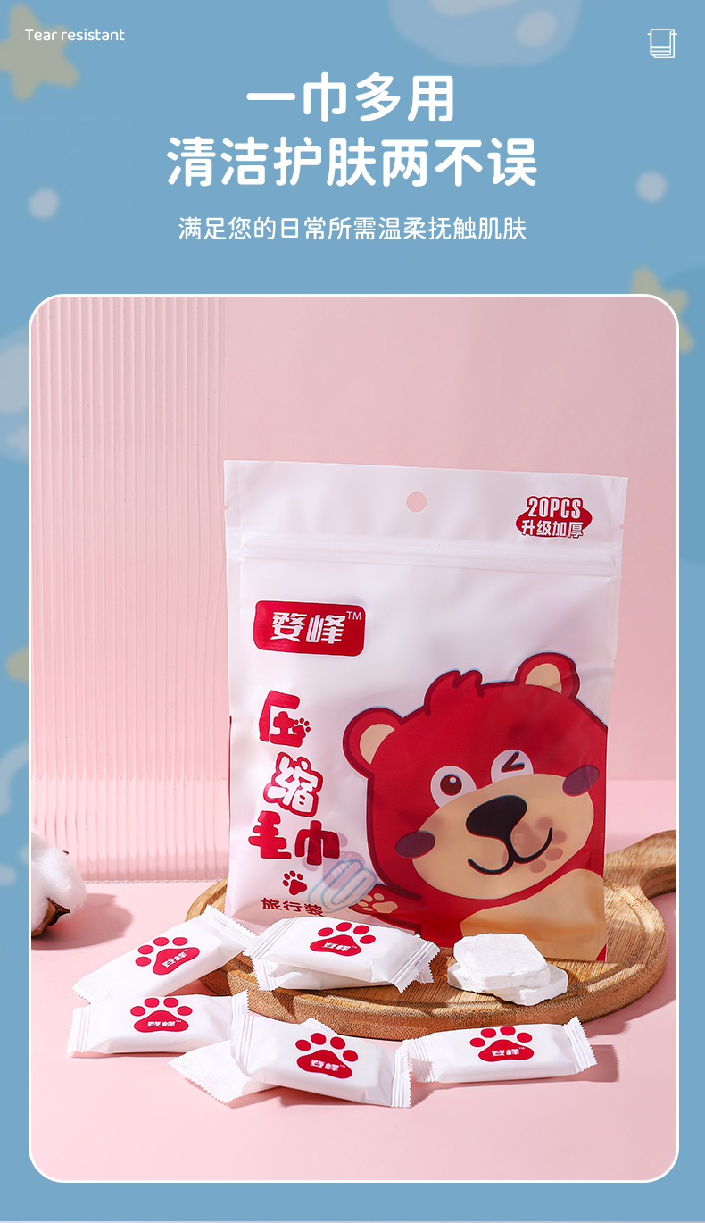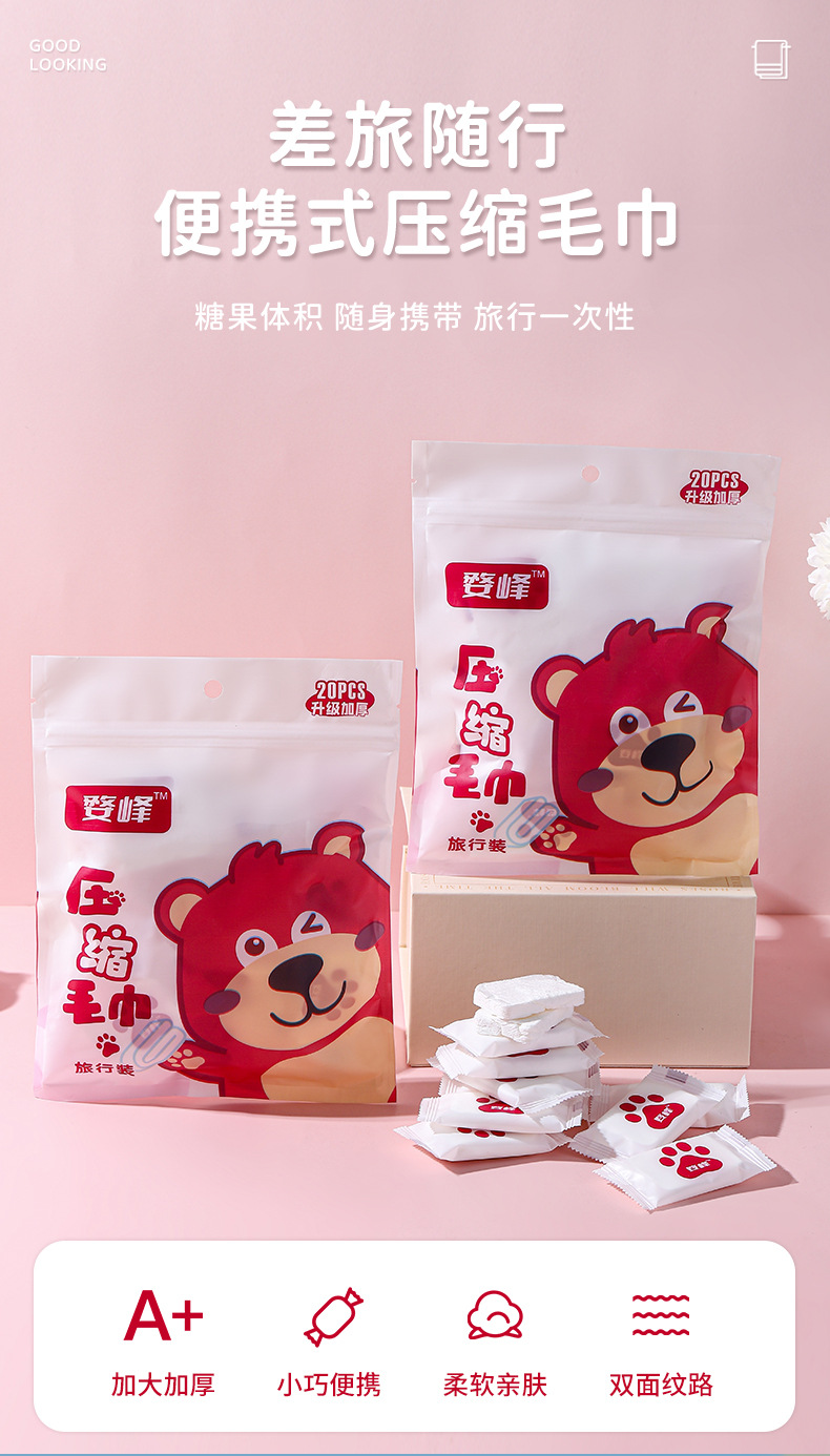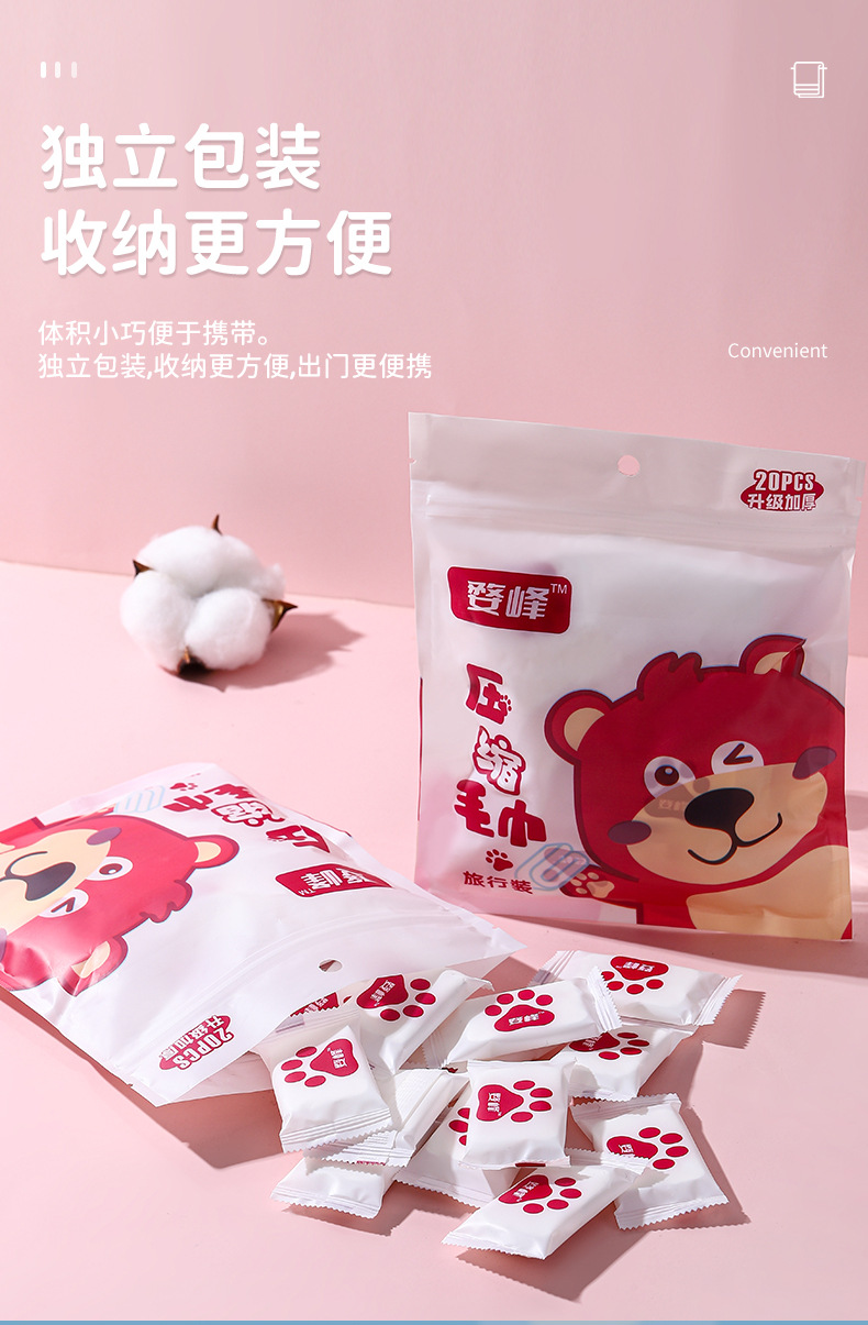 일회용 압축 수건 딸기 곰 압축 수건 휴대용 압축 수건 일회용 얼굴 수건면 부드러운 수건