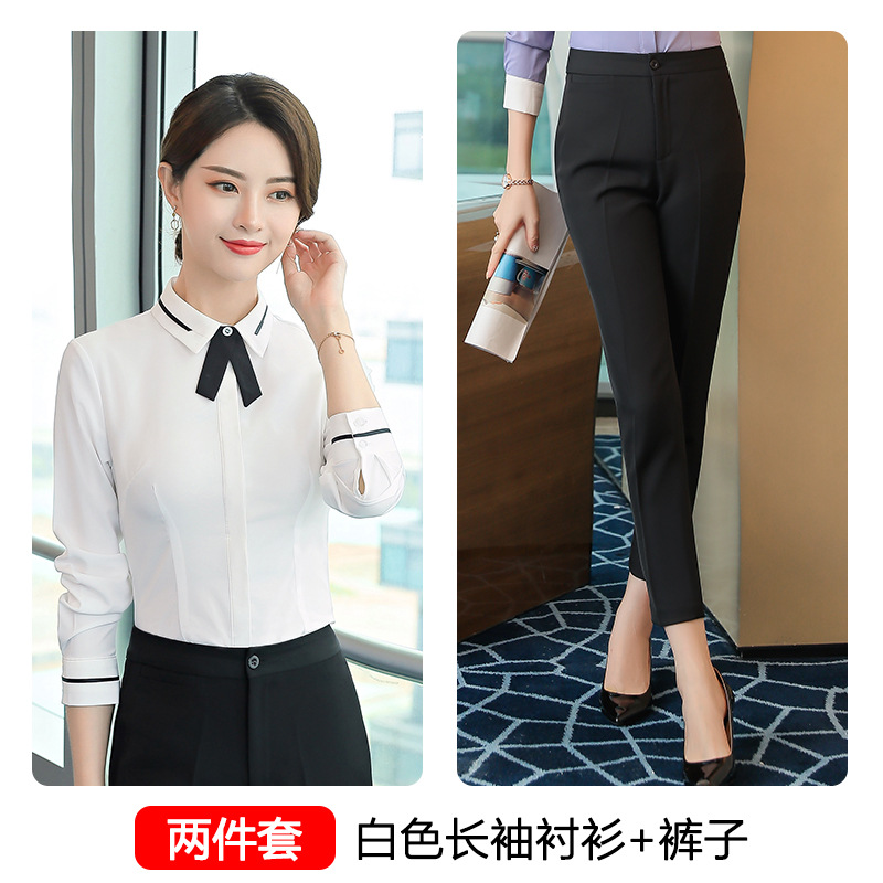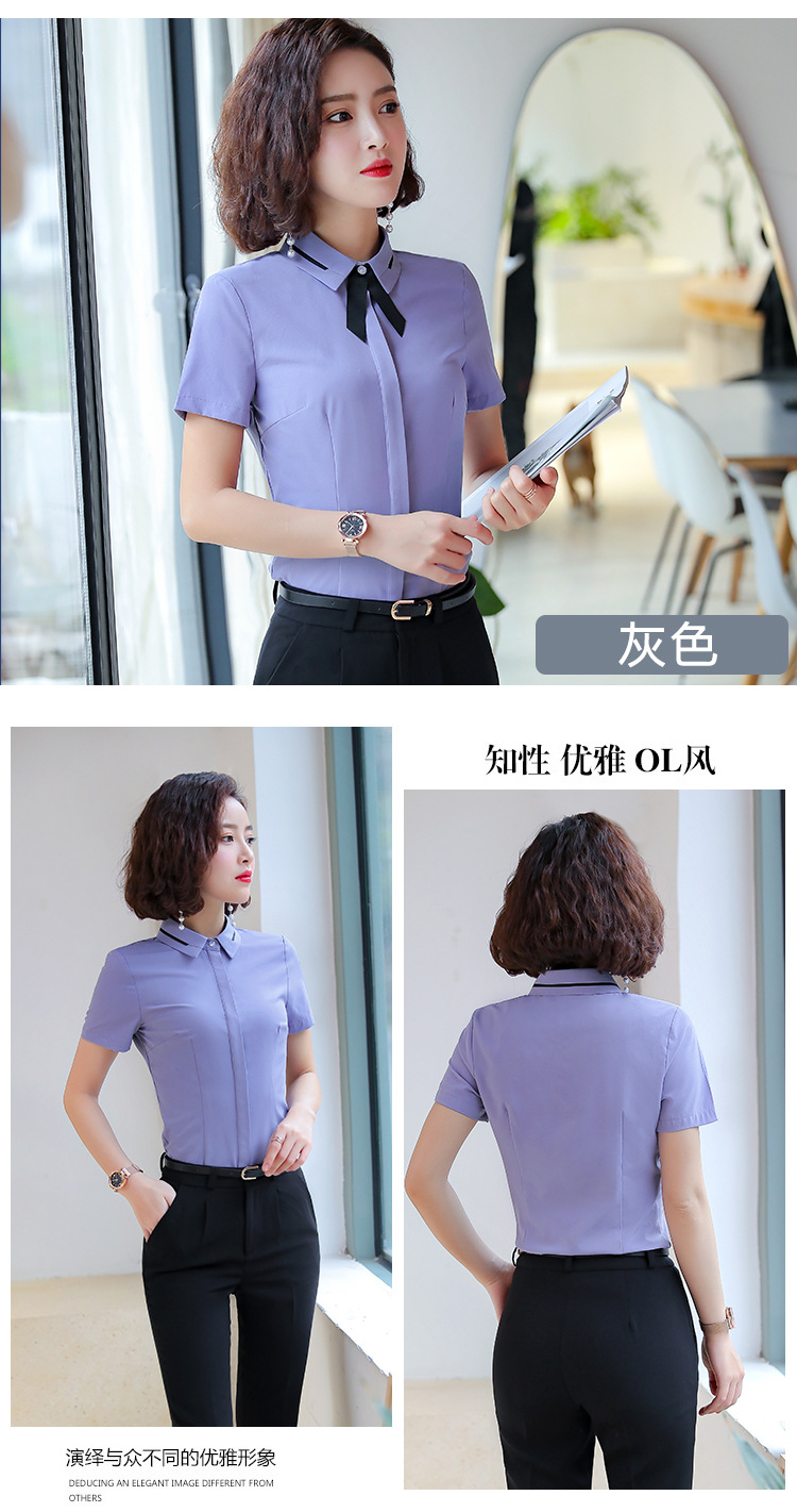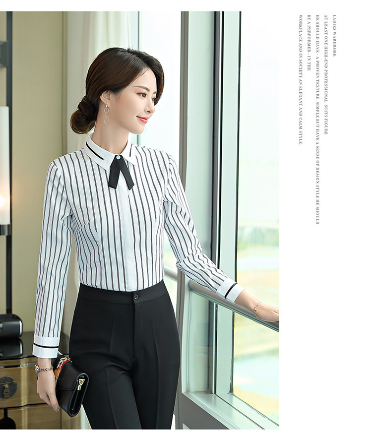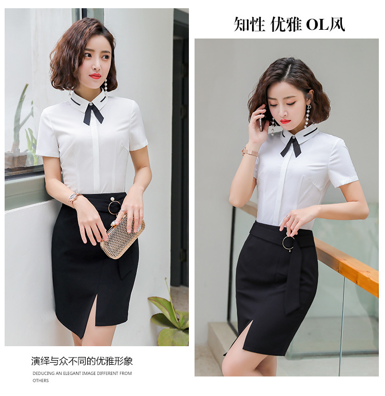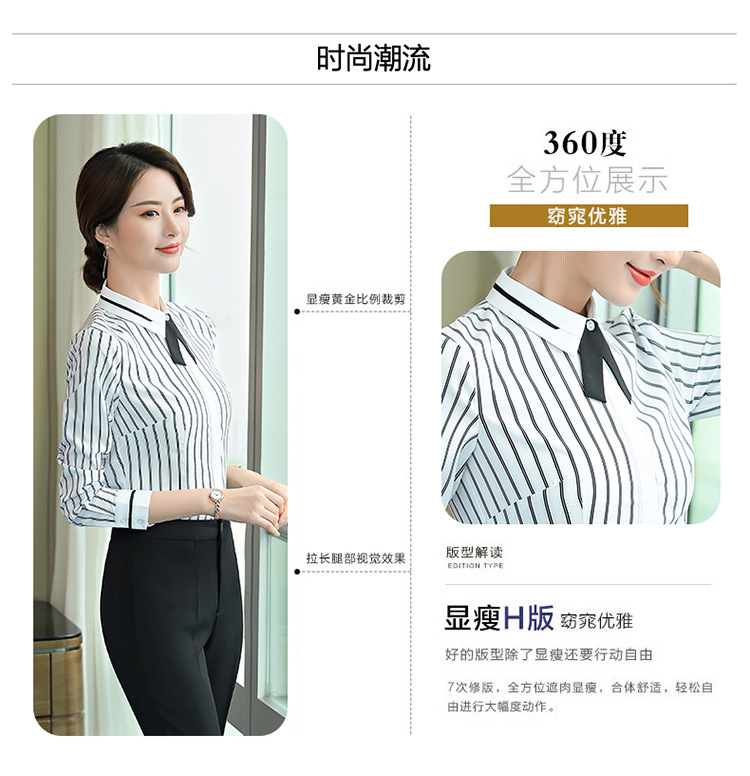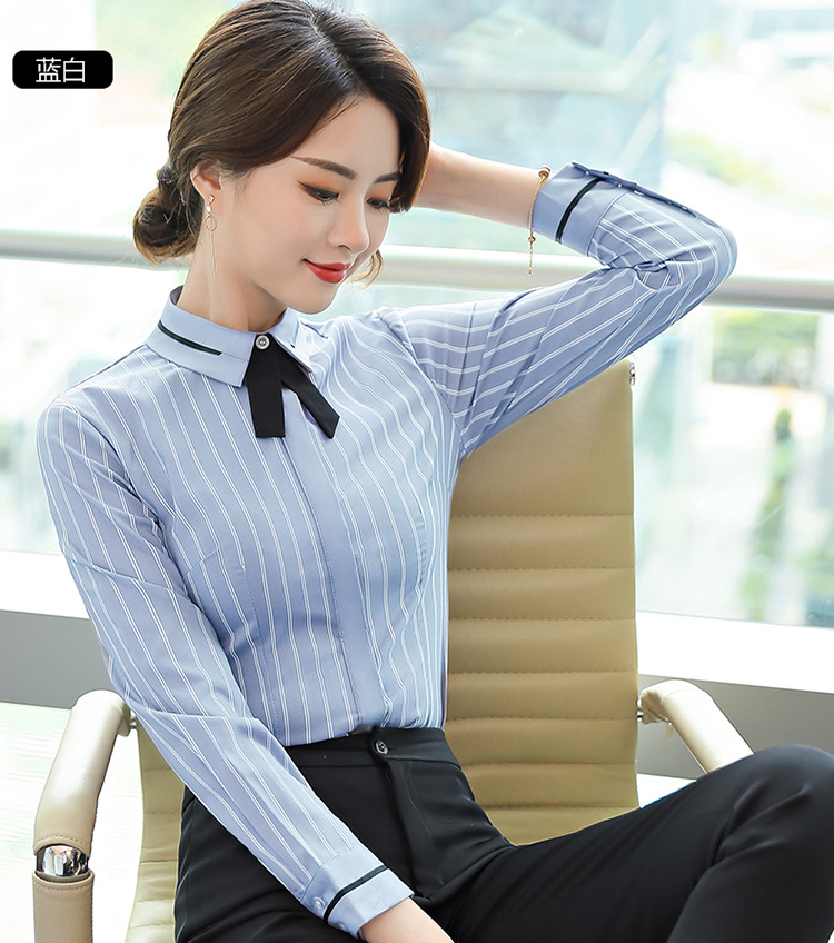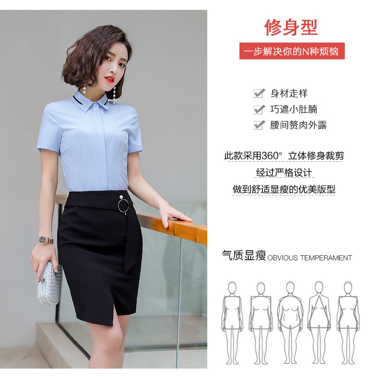 Qiguniang 여름 전문 반팔 줄무늬 셔츠 여성 호텔 프런트 데스크 작업복 세트 레스토랑 웨이터 셔츠