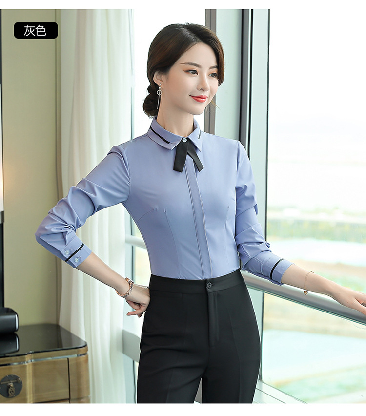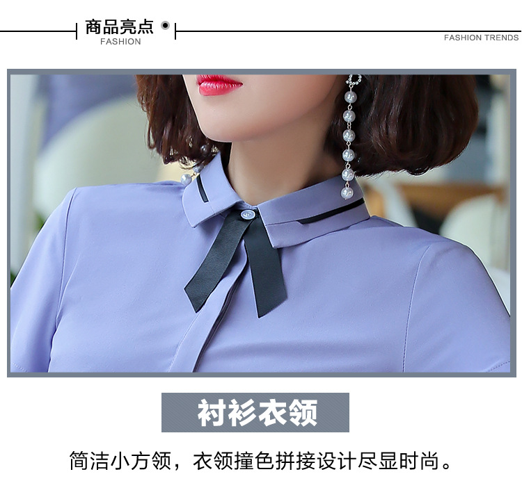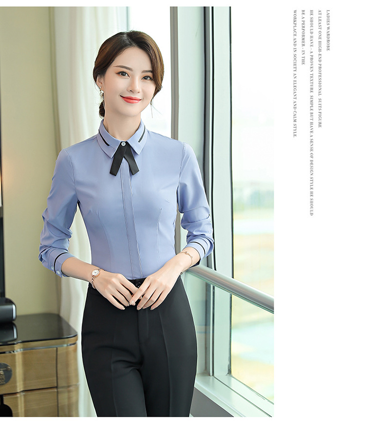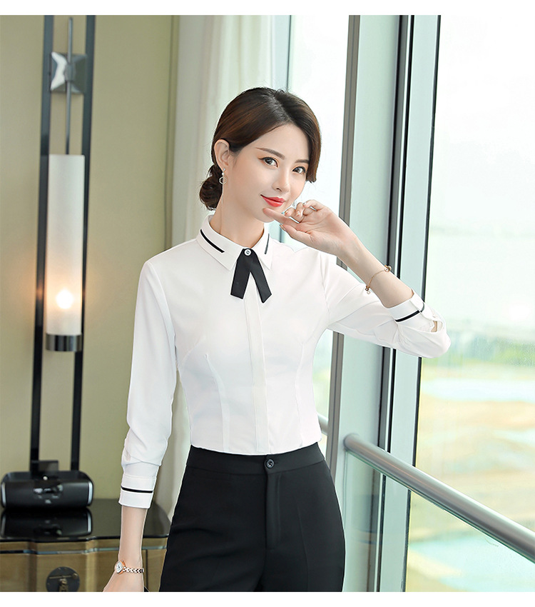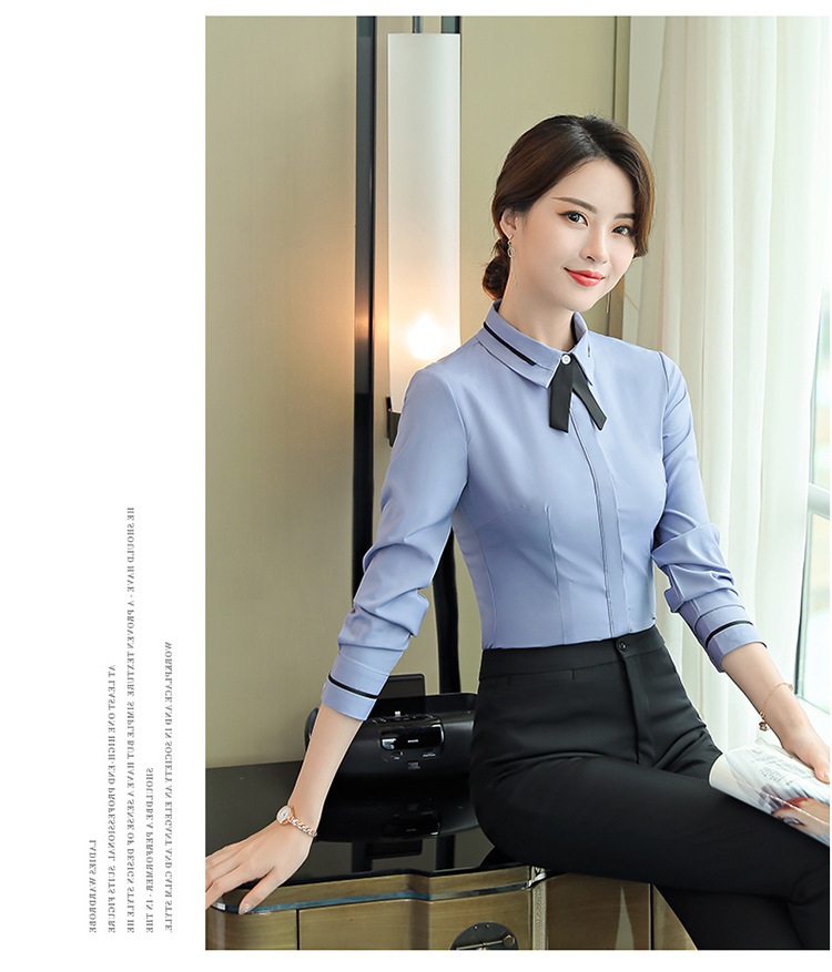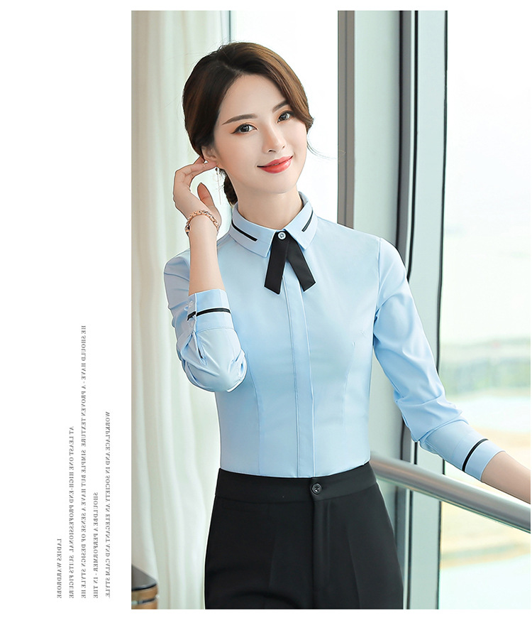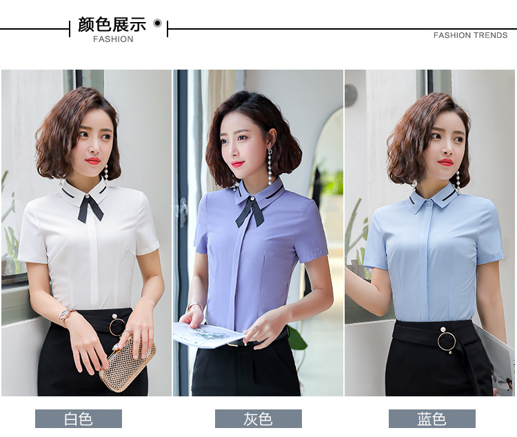 Qiguniang 여름 전문 반팔 줄무늬 셔츠 여성 호텔 프런트 데스크 작업복 세트 레스토랑 웨이터 셔츠