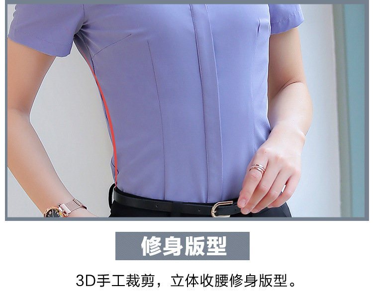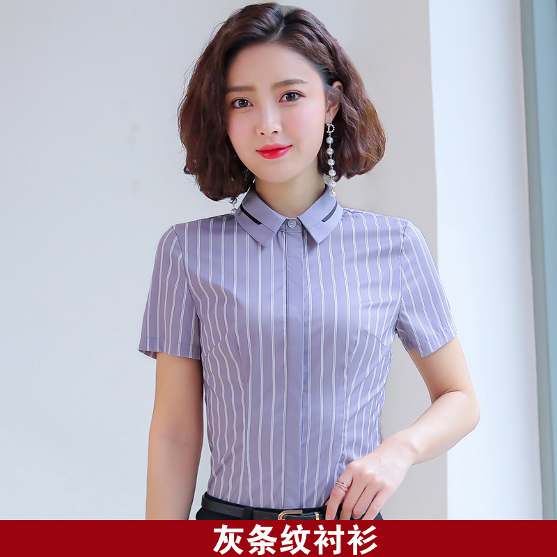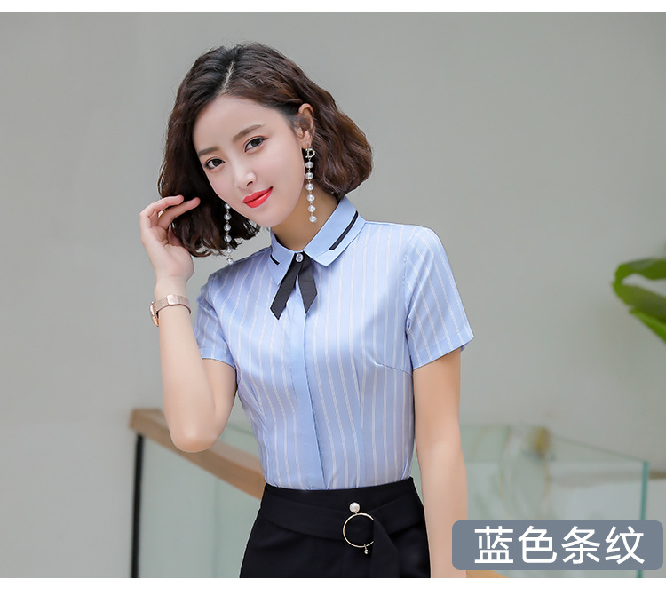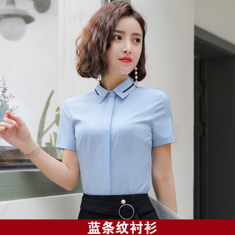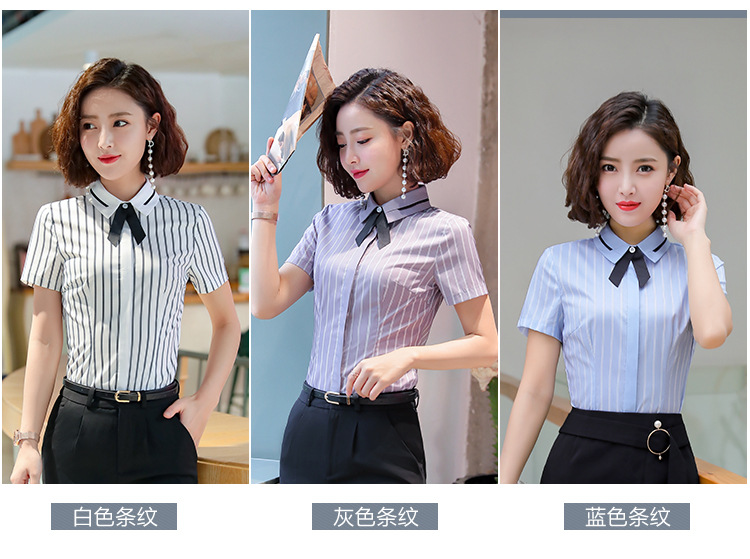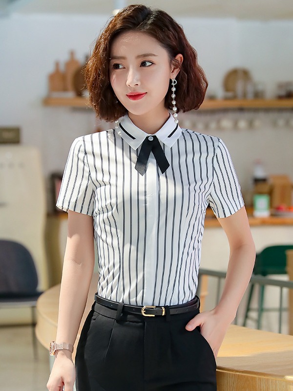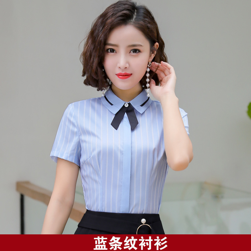 Qiguniang 여름 전문 반팔 줄무늬 셔츠 여성 호텔 프런트 데스크 작업복 세트 레스토랑 웨이터 셔츠스토어 가기