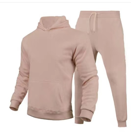 220g 가을과 겨울 크로스 보더 남성과 여성의 캐주얼 유럽 크기의 빈 단색 세트 양털 느슨한 스웨터 스웻 바지 투피스 세트