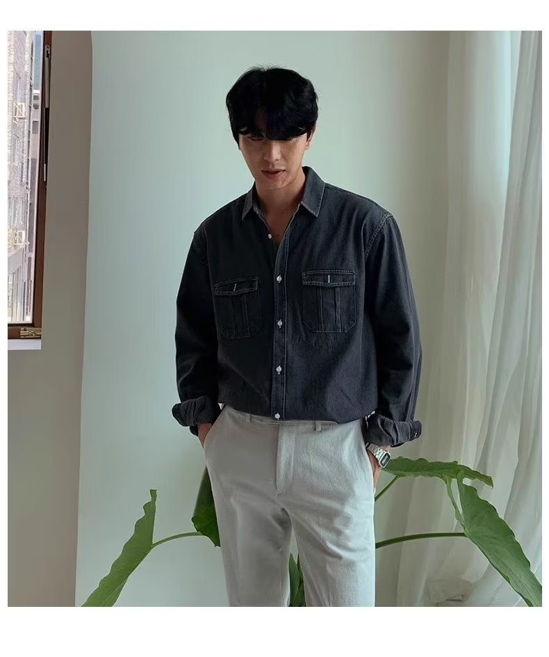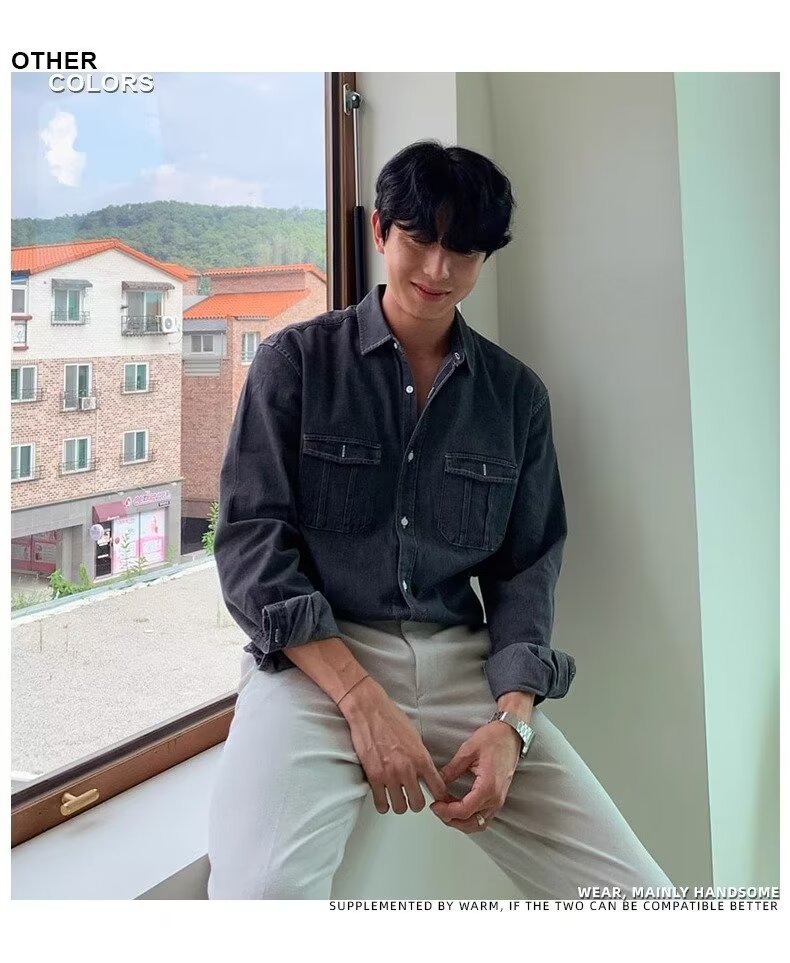 대외 무역 크로스보더 워싱 빈티지 데님 셔츠 남성용 봄 한국 스타일 루즈핏 고급 긴팔 워크 셔츠스토어 가기