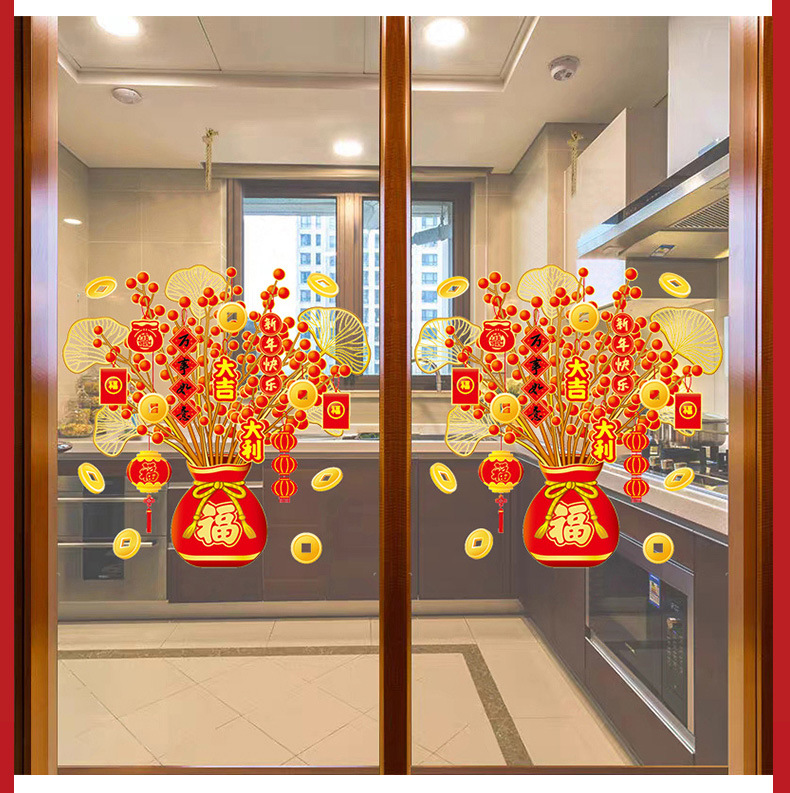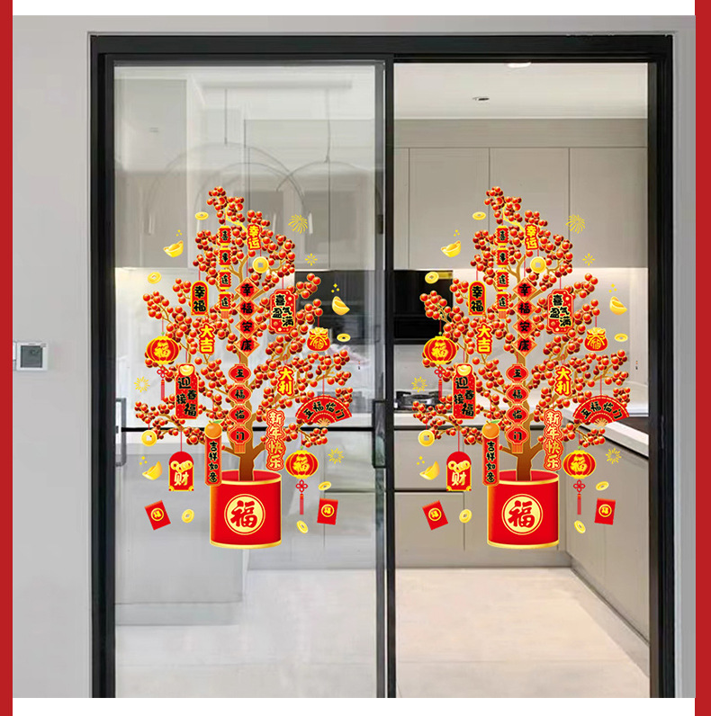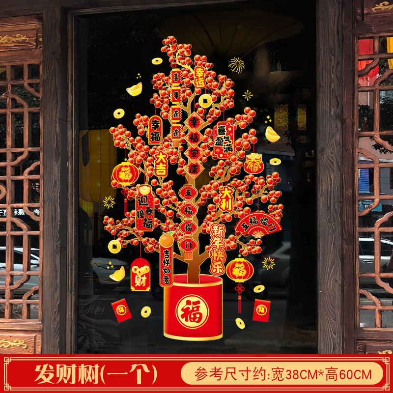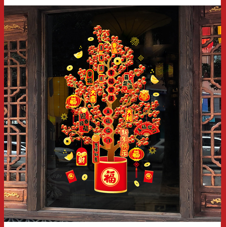 소리 생성 머리 부 나무 유리 문 스티커 정전기 스티커 봄 축제 새해 드래곤 년 거실 창 스티커 창 꽃 스티커