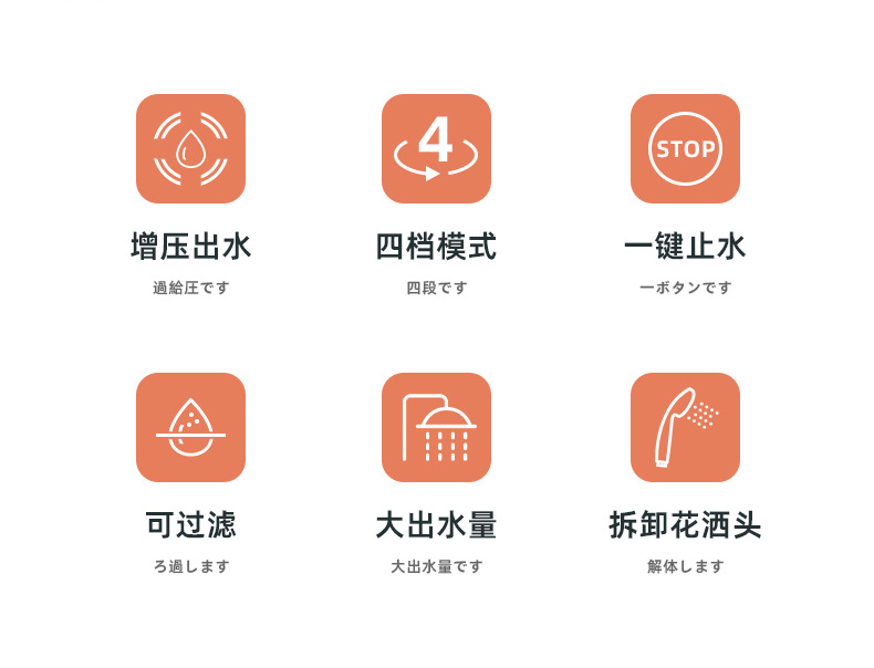 일본 4 블록 슈퍼 차저 낙하 방지 누수 방지 샤워 뷰티 샤워 헤드 로터스 노즐 슈퍼 차저 샤워 노즐