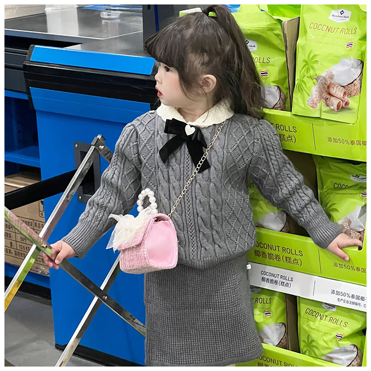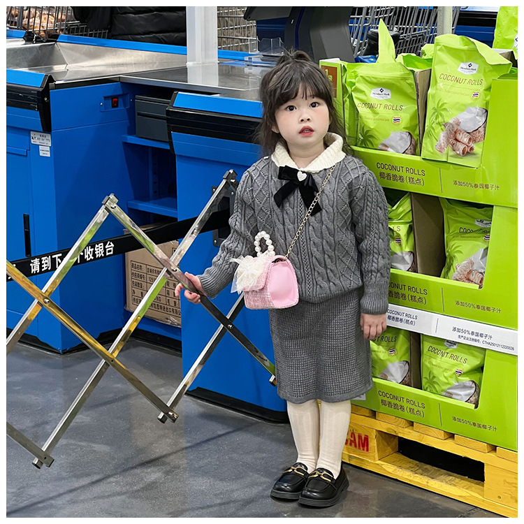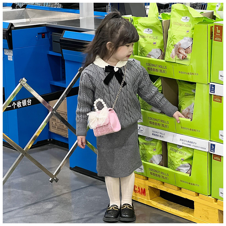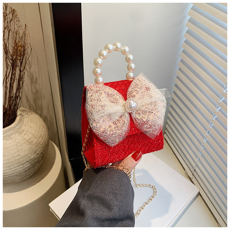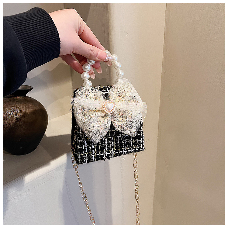 슈퍼 귀여운 새로운 어린이 가방 메신저 가방 패션 진주 휴대용 레이스 활 소녀 공주 액세서리 가방