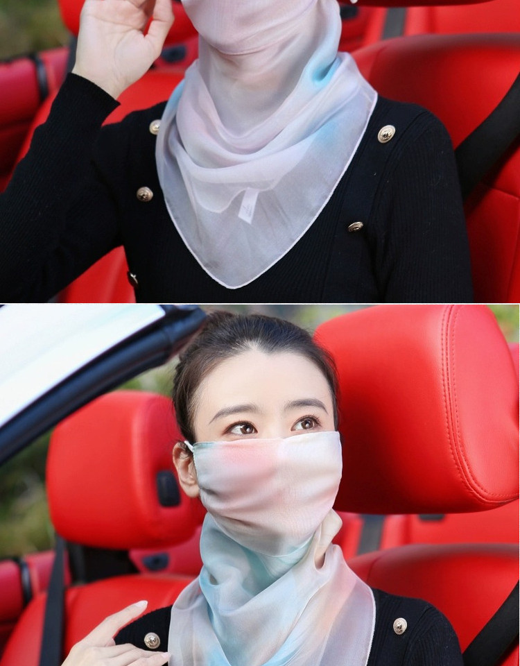 100% 뽕나무 실크 마스크 통기성 목 보호 여름 태양 보호 베일 여성의 실크 마스크 전체 얼굴 얇은 태양 보호 사이클링