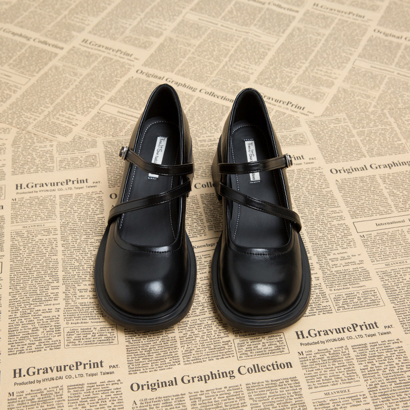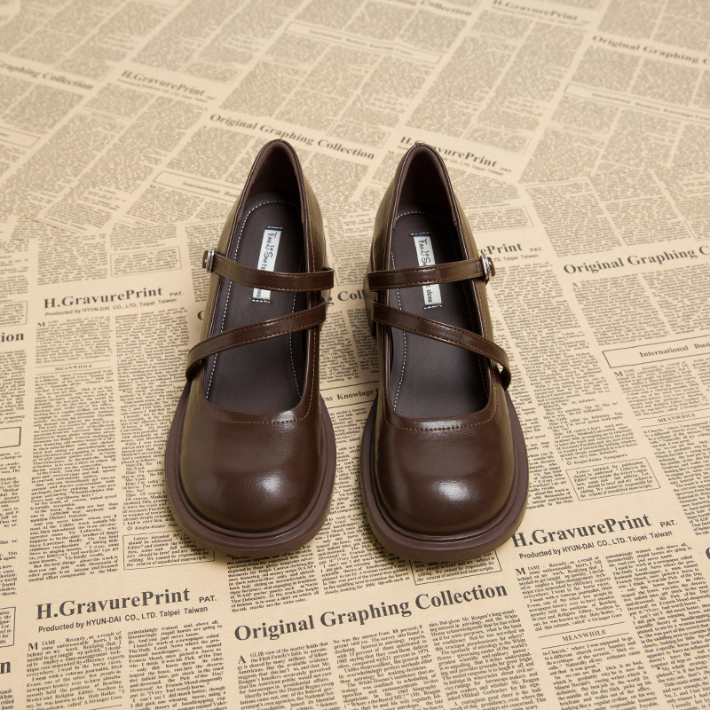 6086-1 메리 제인 하이힐 여성 신발 여름 2025 가을 새로운 다목적 작은 가죽 신발 두꺼운 뒤꿈치 단일 신발스토어 가기
