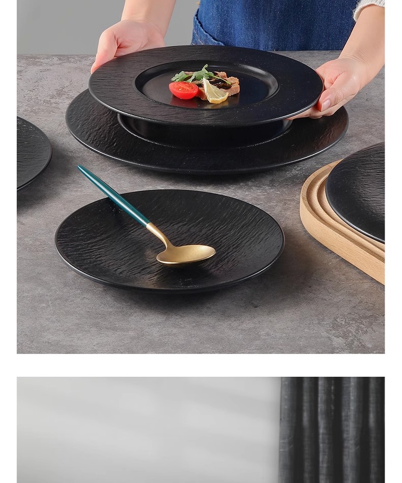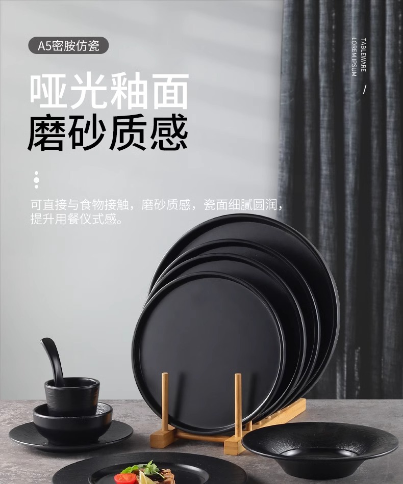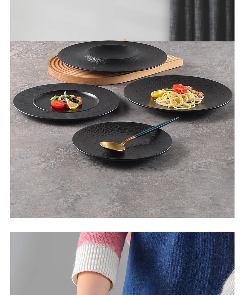 멜라민 블랙 플레이트 레스토랑 파스타 플레이트 웨스턴 스테이크 플레이트 바베큐 플레이트 플랫 플레이트 상업용 식기