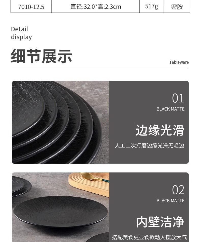 • 7010-12.5 검은 음식 등급 플레이트
