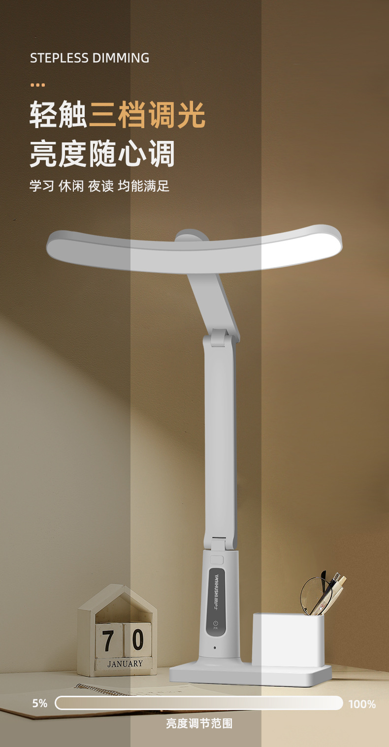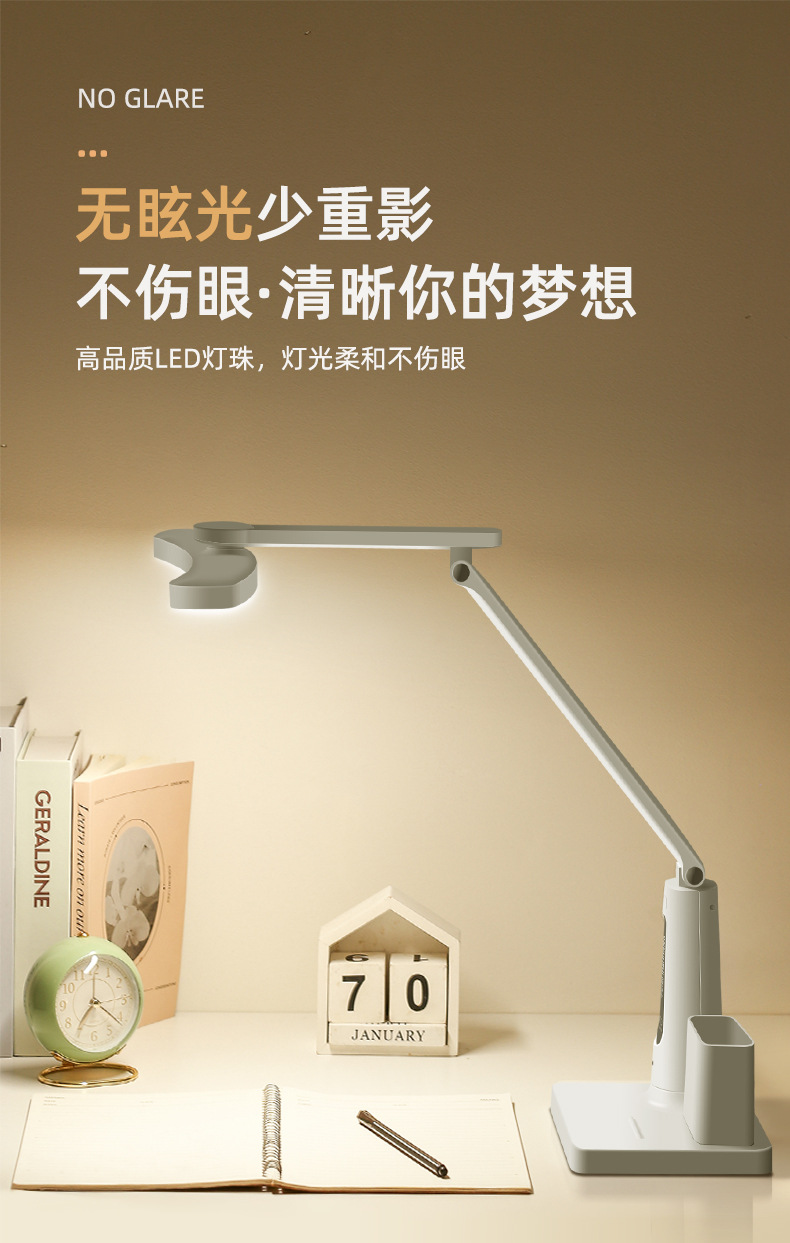 전국 AA 레벨 조도 책상 램프 눈 보호 가정 연구 사무실 접는 펜 홀더 야간 조명 학생 책상 독서 작업 조명