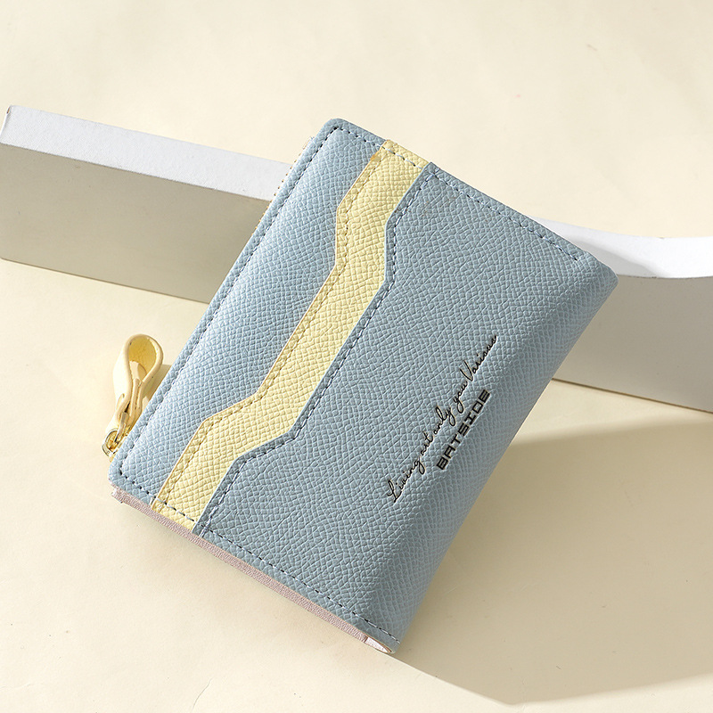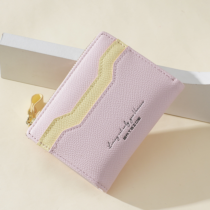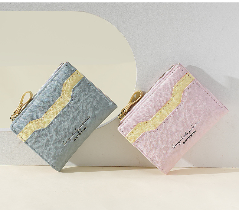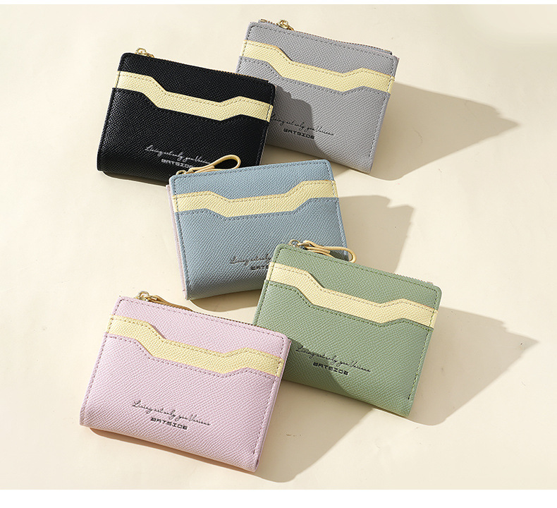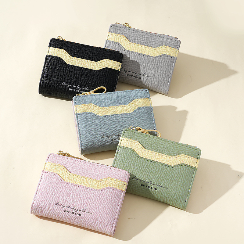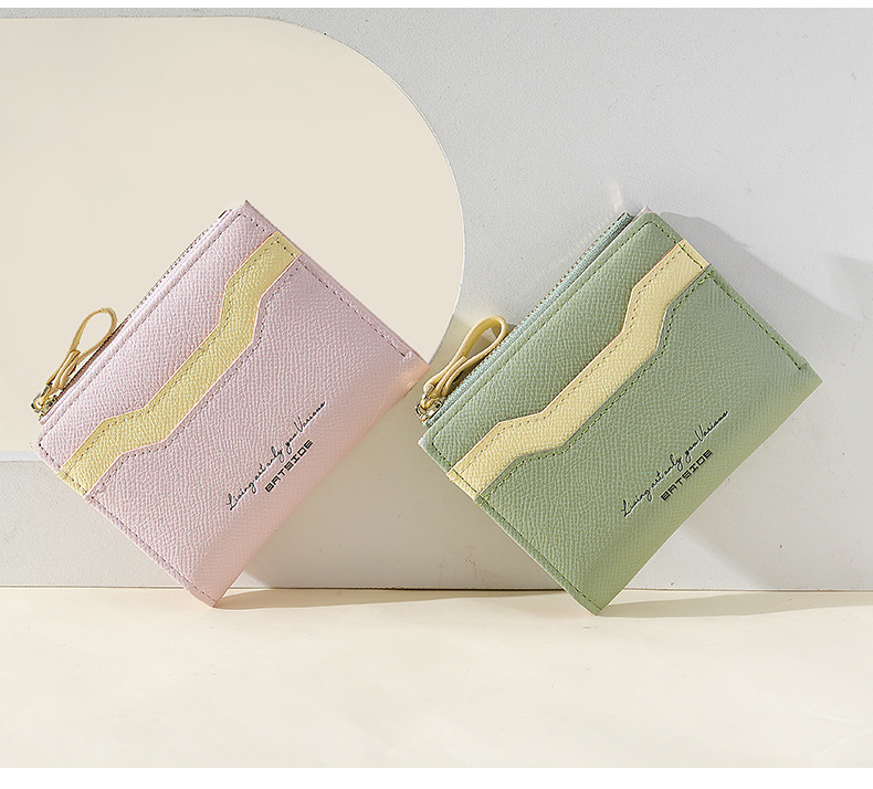 신선한 콘트라스트 컬러 일본 스타일 짧은 여성 지갑 학생 가방 소녀의 귀여운 고급 20% 폴드 멀티 카드 변경 카드 홀더스토어 가기