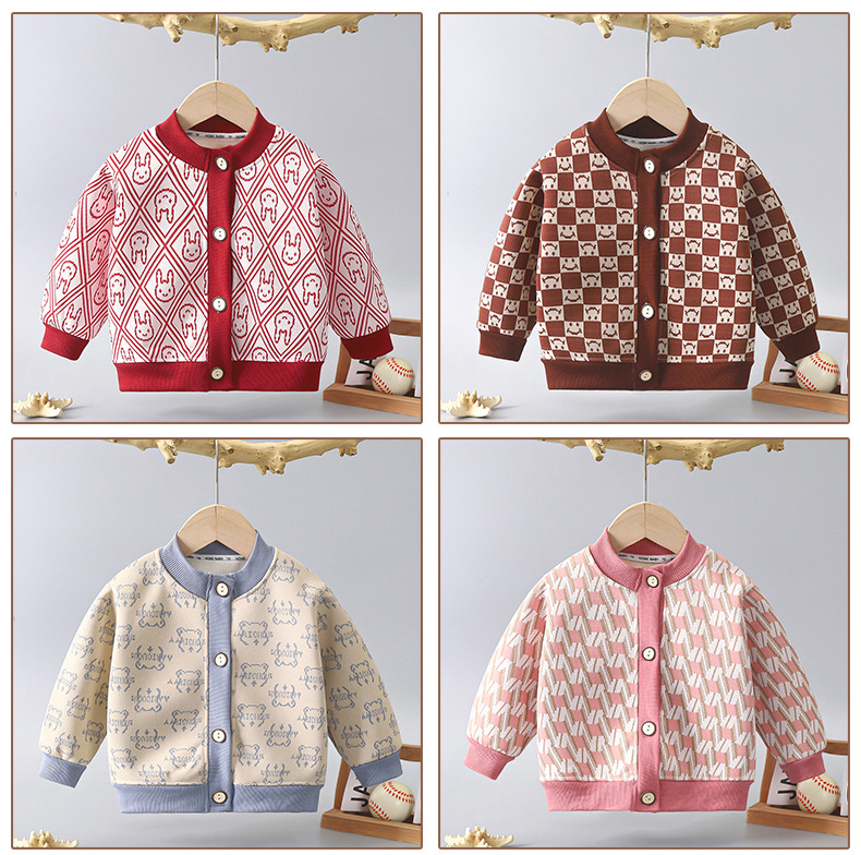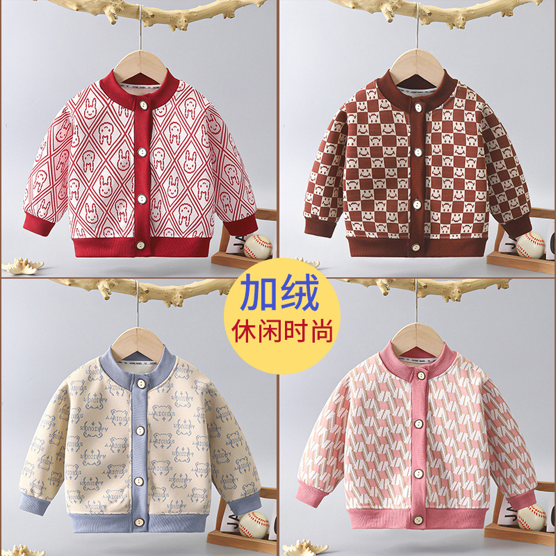 새로운 어린이 가을 겨울 기모 카디건 코트 소년 소녀 한국 캐주얼 터틀넥 야구 유니폼 아기 니트 탑