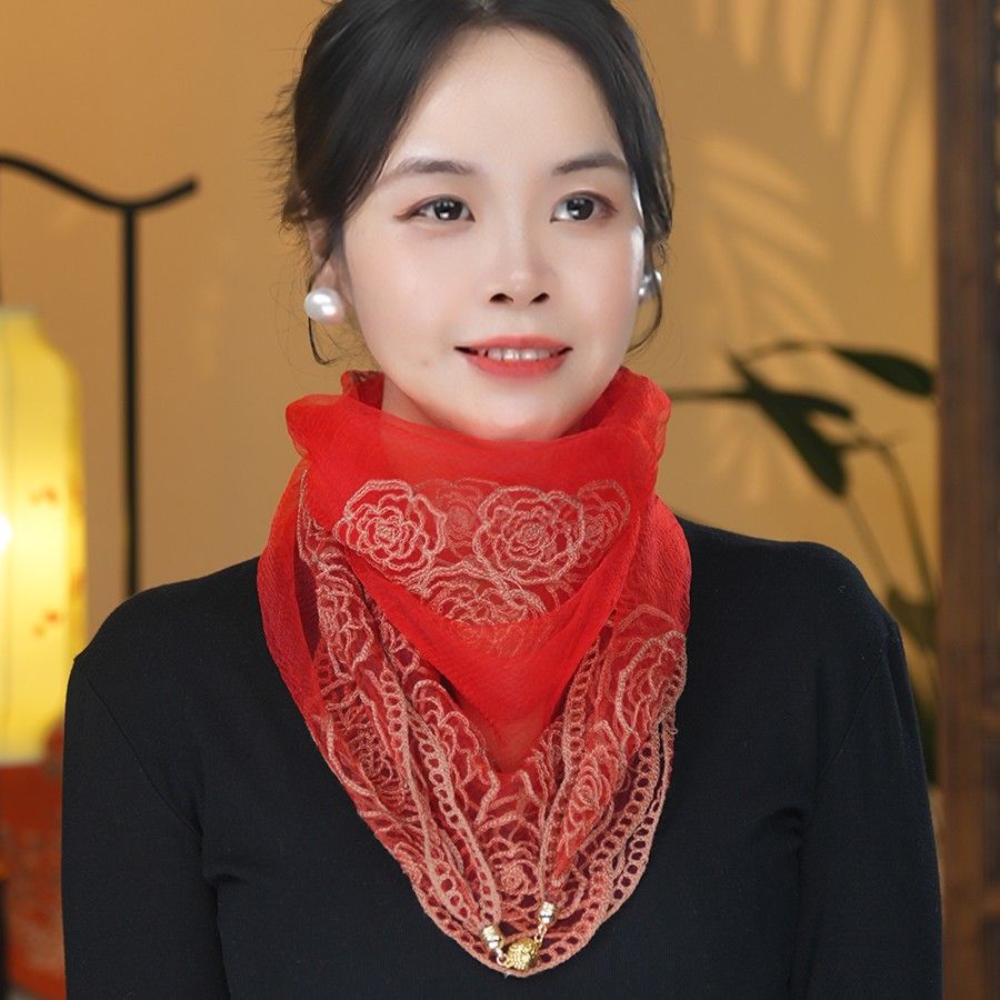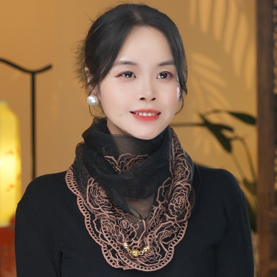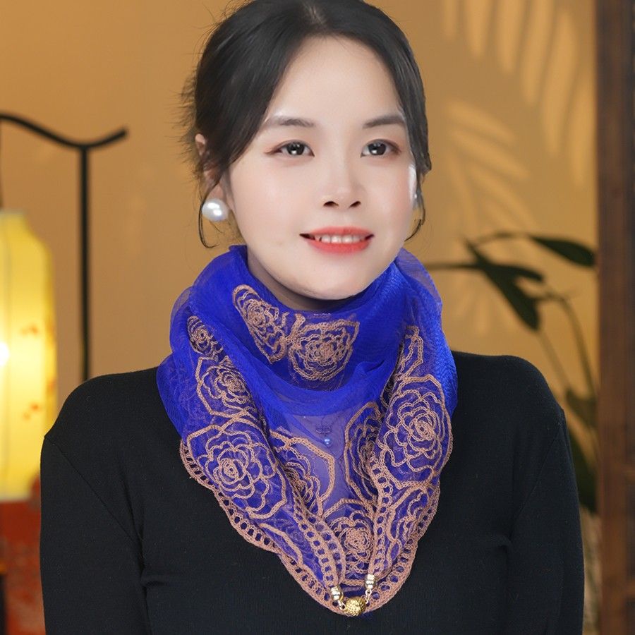 자수 사각형 스카프 마그네틱 버클 아름다운 스카프 다기능 스카프 세련된 올 매치 얇은 목 커버 패턴 다양한 스카프스토어 가기