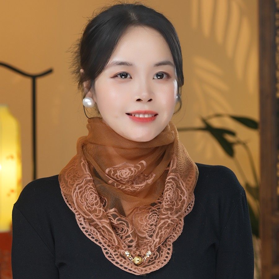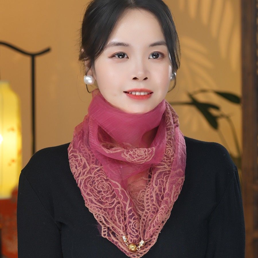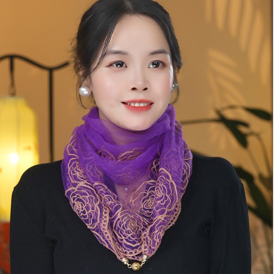 자수 사각형 스카프 마그네틱 버클 아름다운 스카프 다기능 스카프 세련된 올 매치 얇은 목 커버 패턴 다양한 스카프