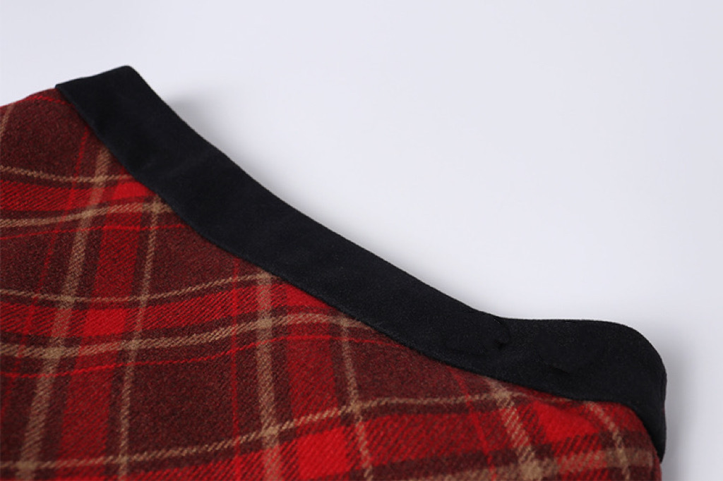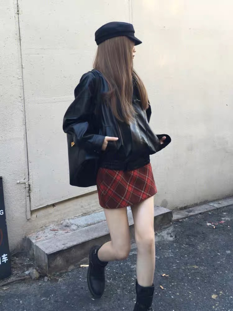• 2377 모직 붉은 격자 무늬 엉덩이 치마