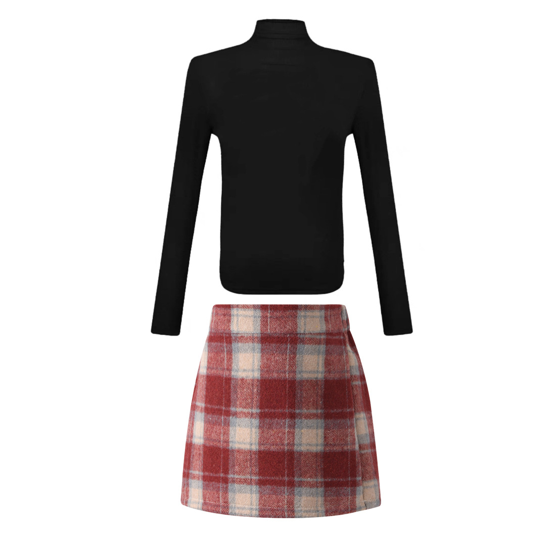 2023 소녀의 새로운 복고풍 크리스마스 모직 빨간 격자 무늬 스커트 디자인 높은 허리 A 라인 엉덩이 치마