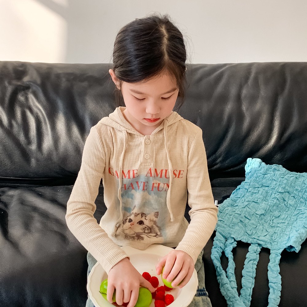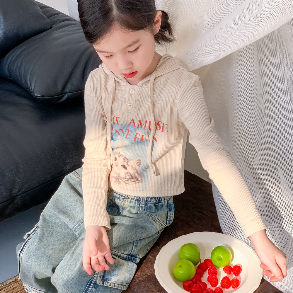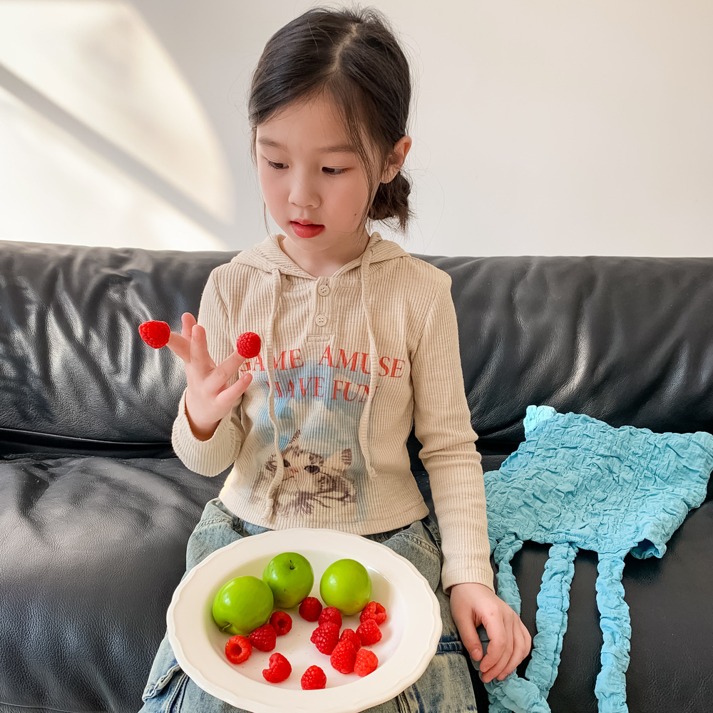 어린이 티셔츠 2025 봄 소녀 한국어 만화 편지 후드 탑 어린이 다목적 캐주얼 니트 바닥 셔츠스토어 가기