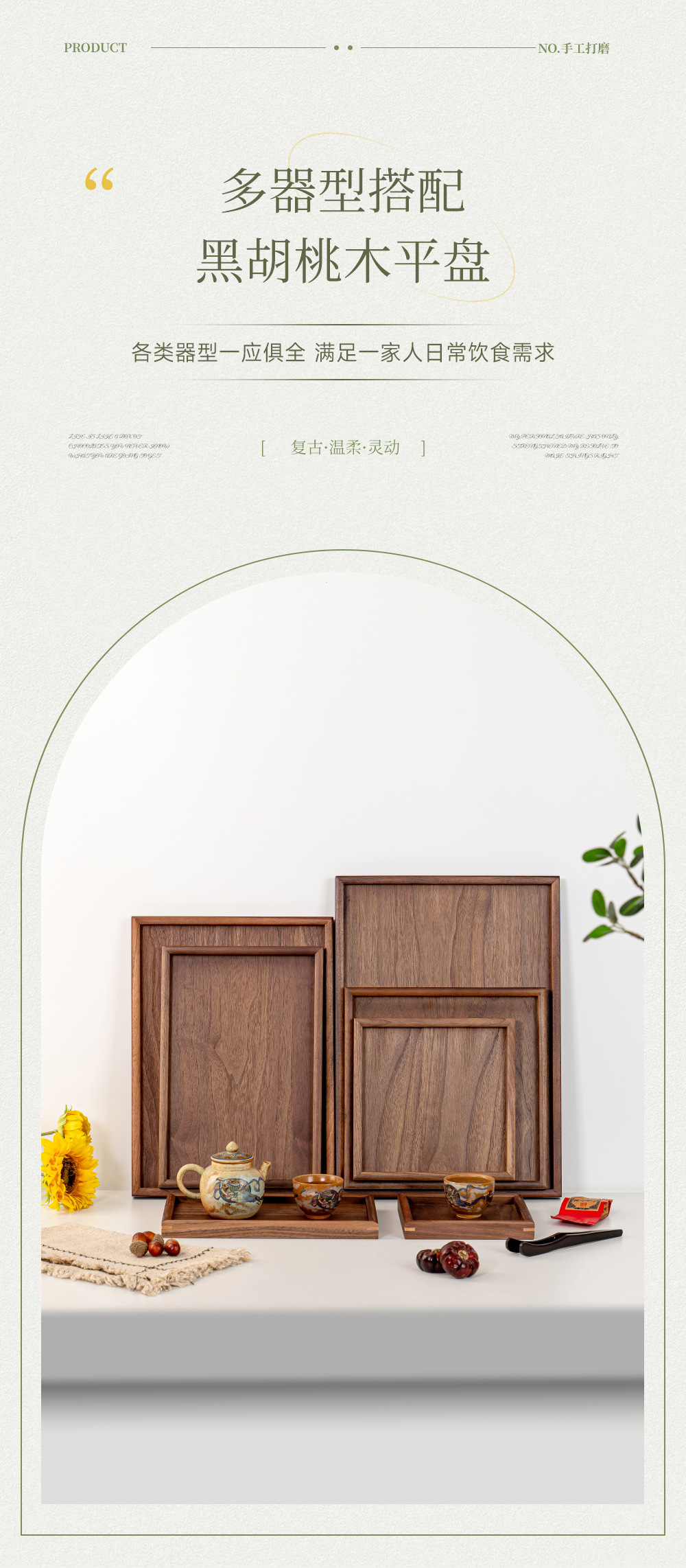 • 블랙 월넛 둥근 모서리 트레이 36.5*26.5*4.8