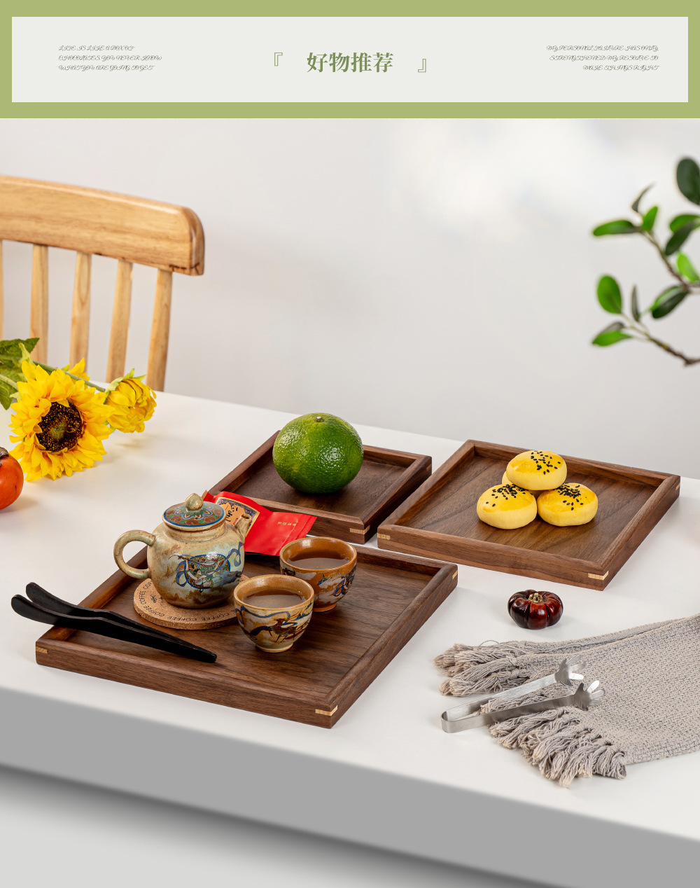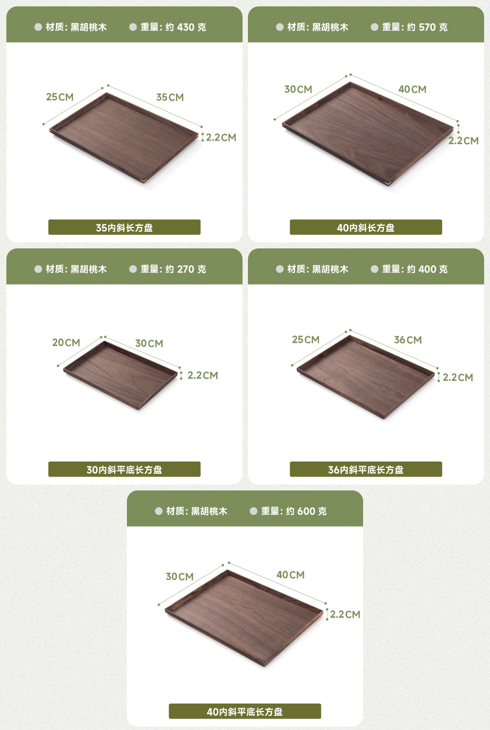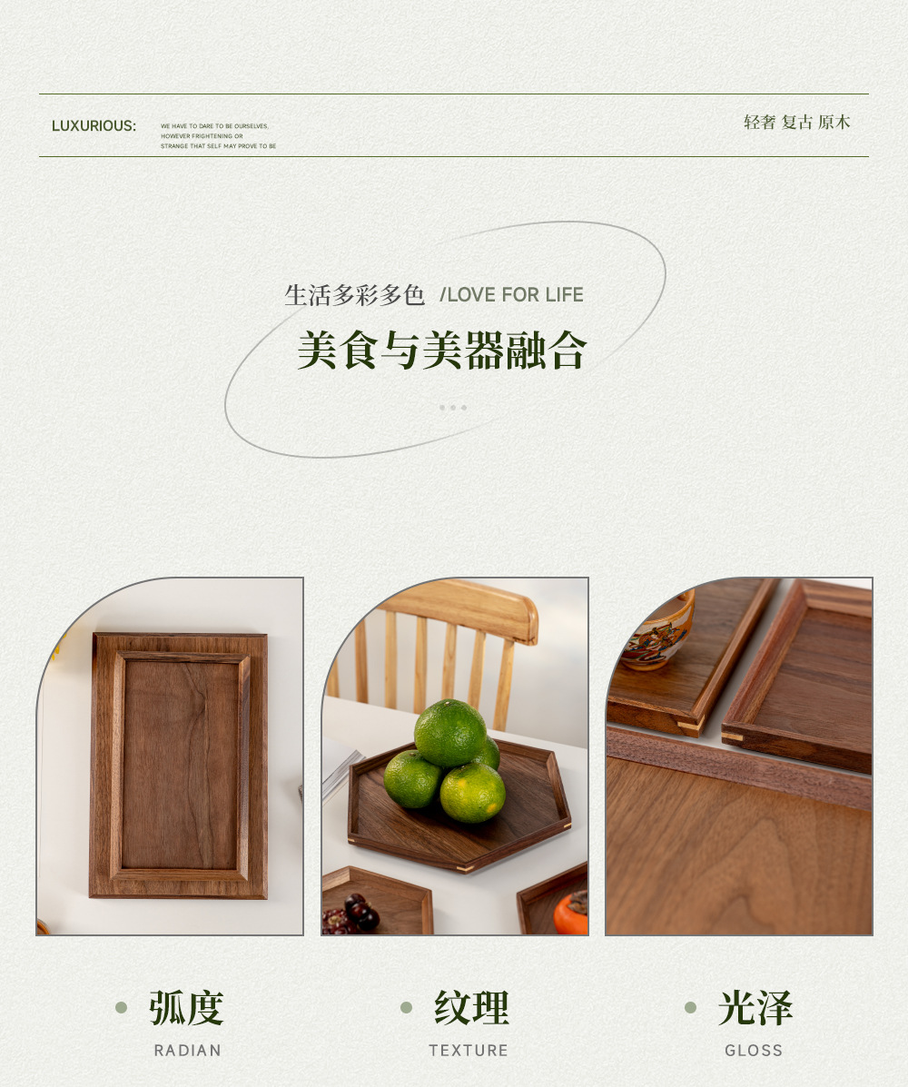 • 블랙 월넛 둥근 모서리 트레이 40*30*4.8
