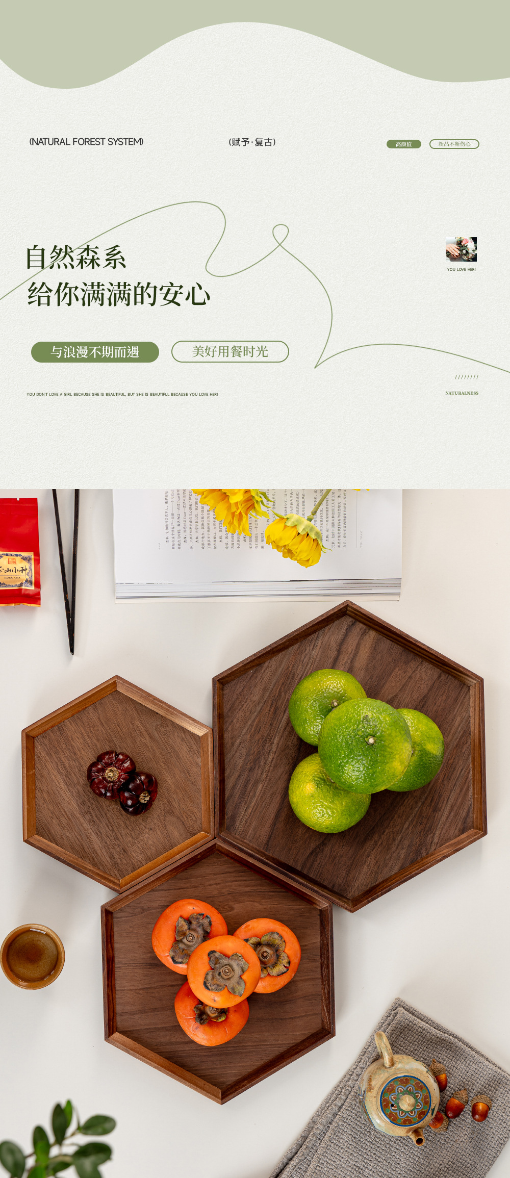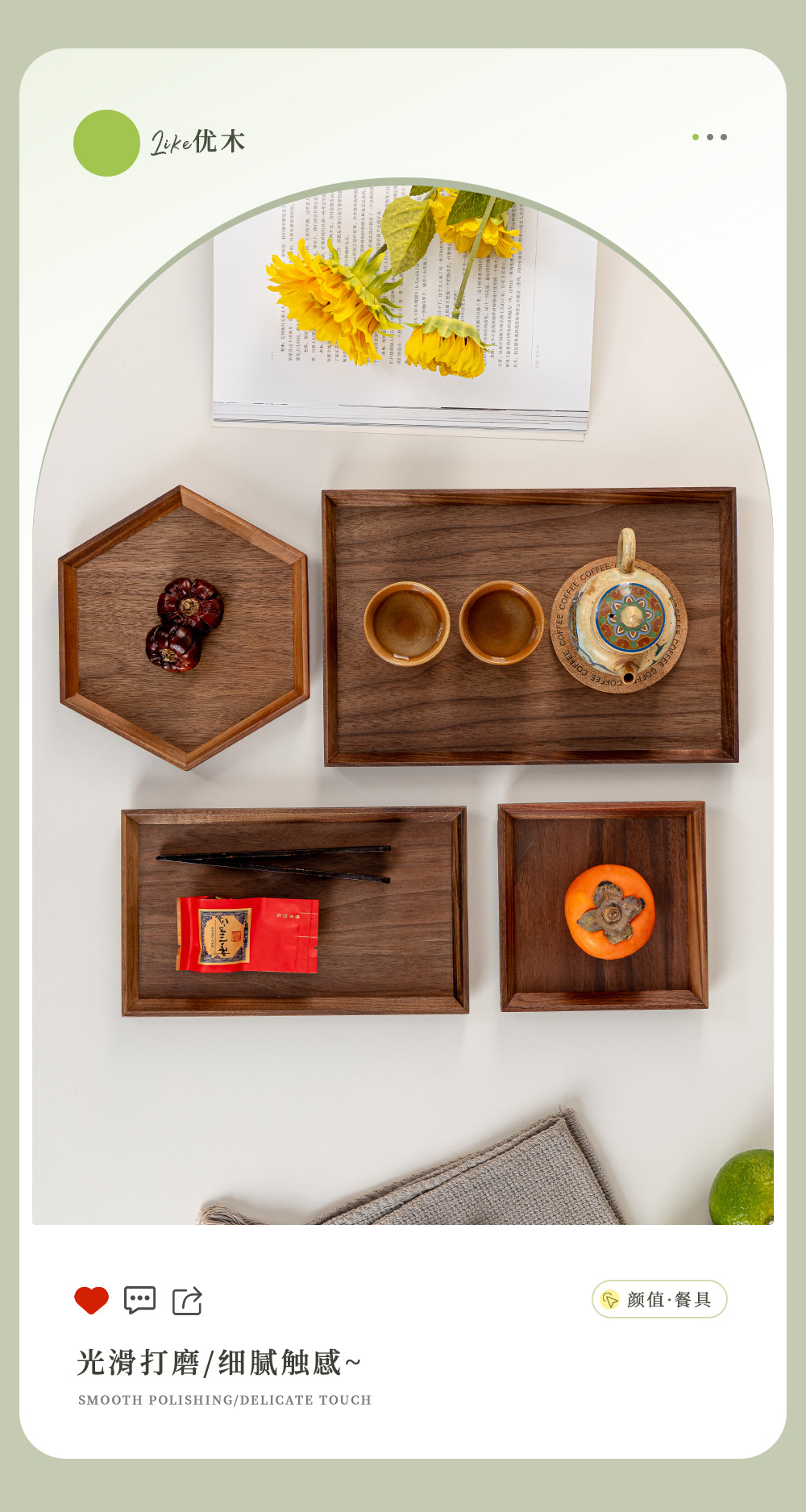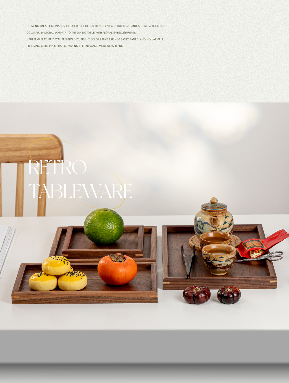 • 블랙 월넛 둥근 모서리 트레이 40*30*4.8