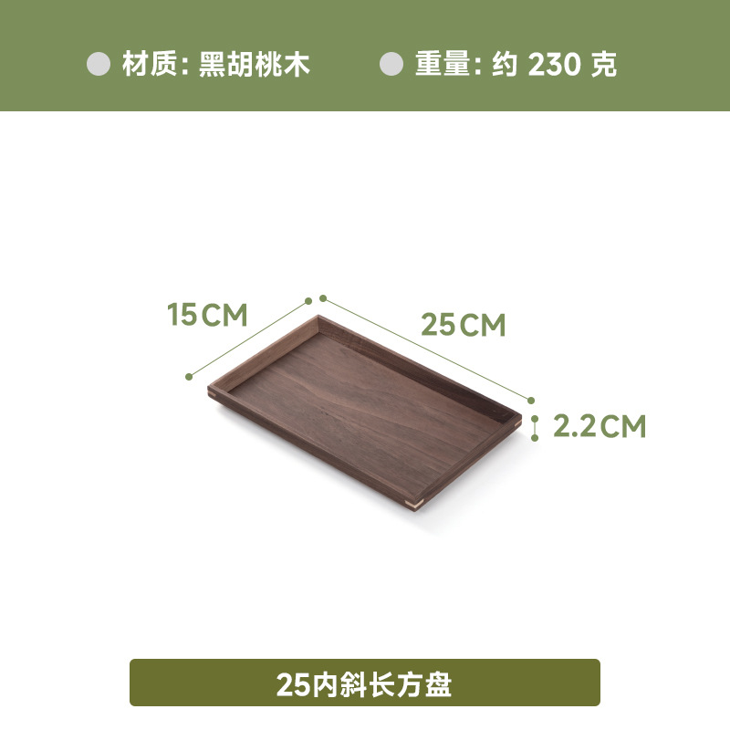 공장 직접 검은 호두 나무 직사각형 접시 식기 과일 스낵 플레이트 호텔 스퀘어 티 트레이 나무 트레이