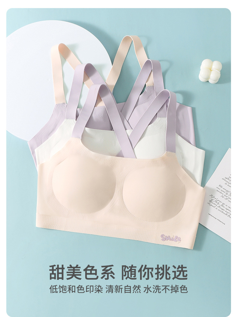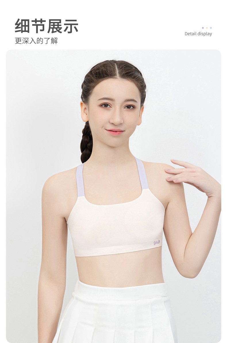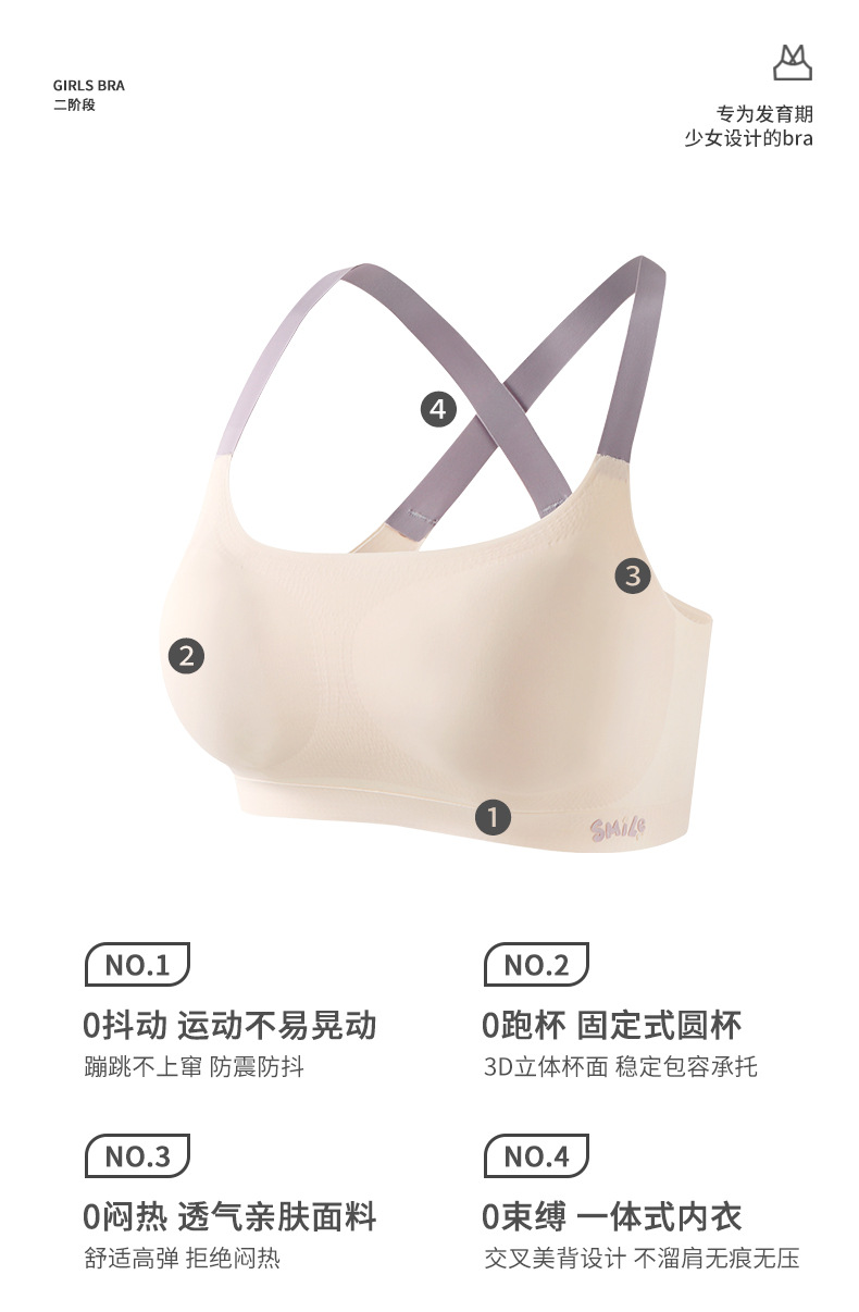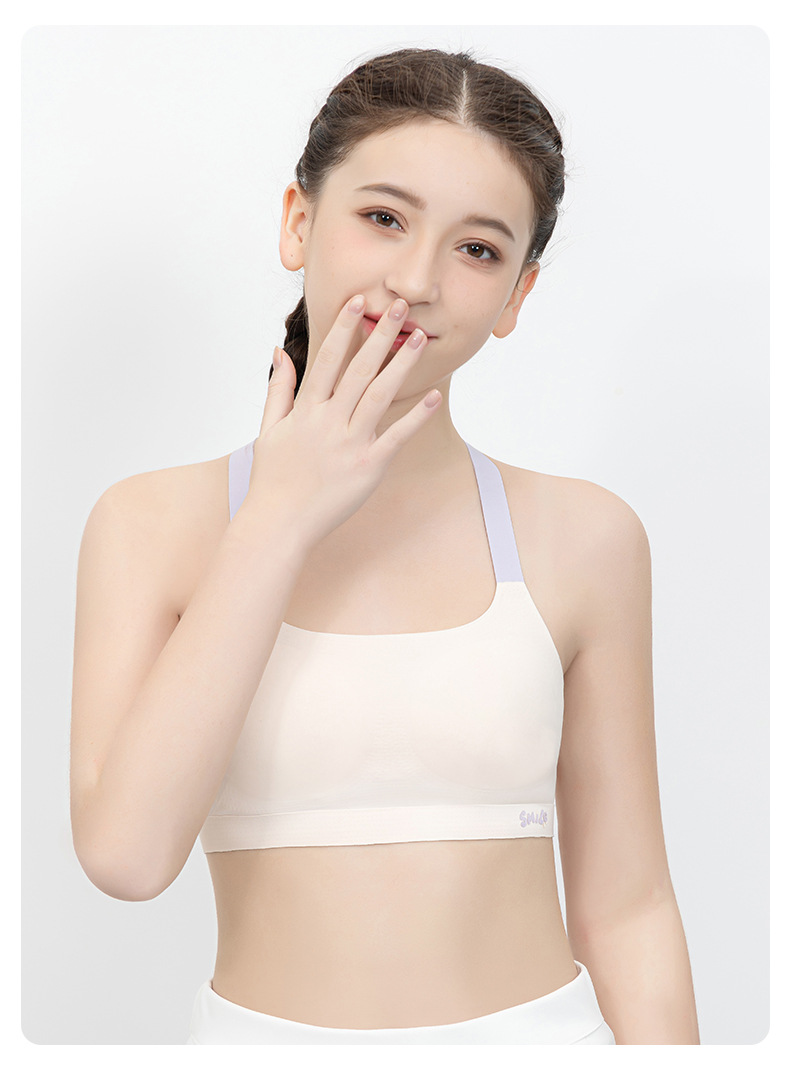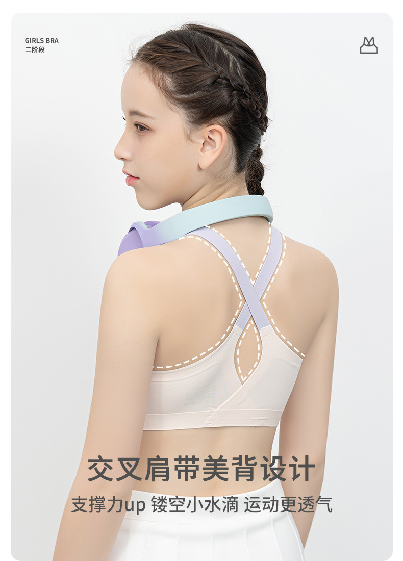 발달기 여아 브라, 사춘기 중학생, 아름다운 등 여아 속옷, 고정컵 스포츠 청소년 브라