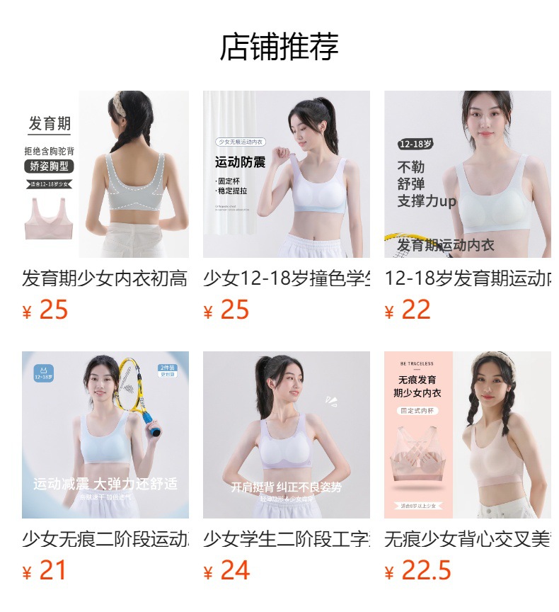 발달기 여아 브라, 사춘기 중학생, 아름다운 등 여아 속옷, 고정컵 스포츠 청소년 브라스토어 가기
