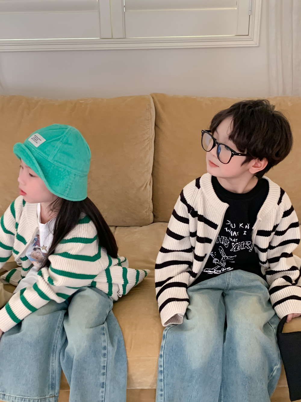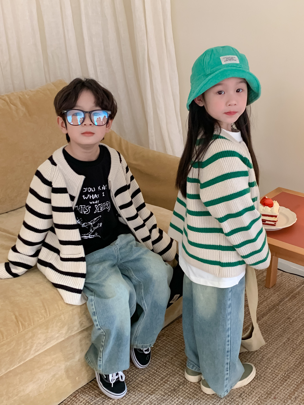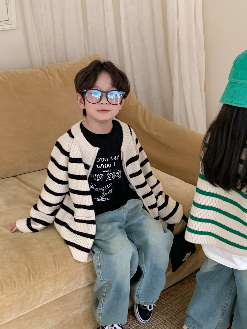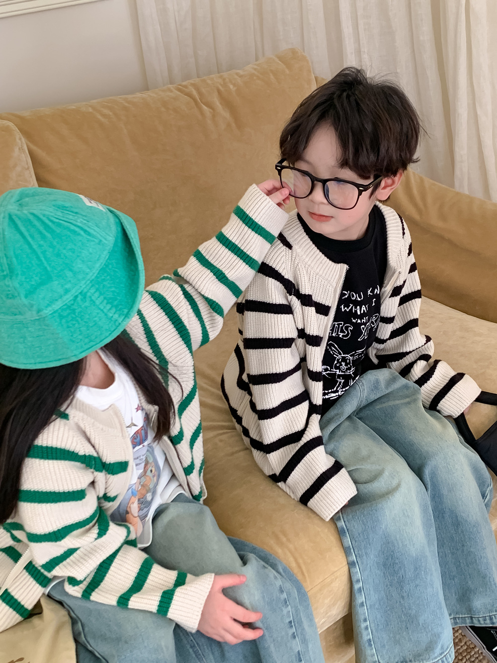 아동 스웨터 2025 가을 스타일 소년 소녀 한국 스타일 지퍼 스트라이프 스웨터 아동 캐주얼 루즈 니트 재킷스토어 가기