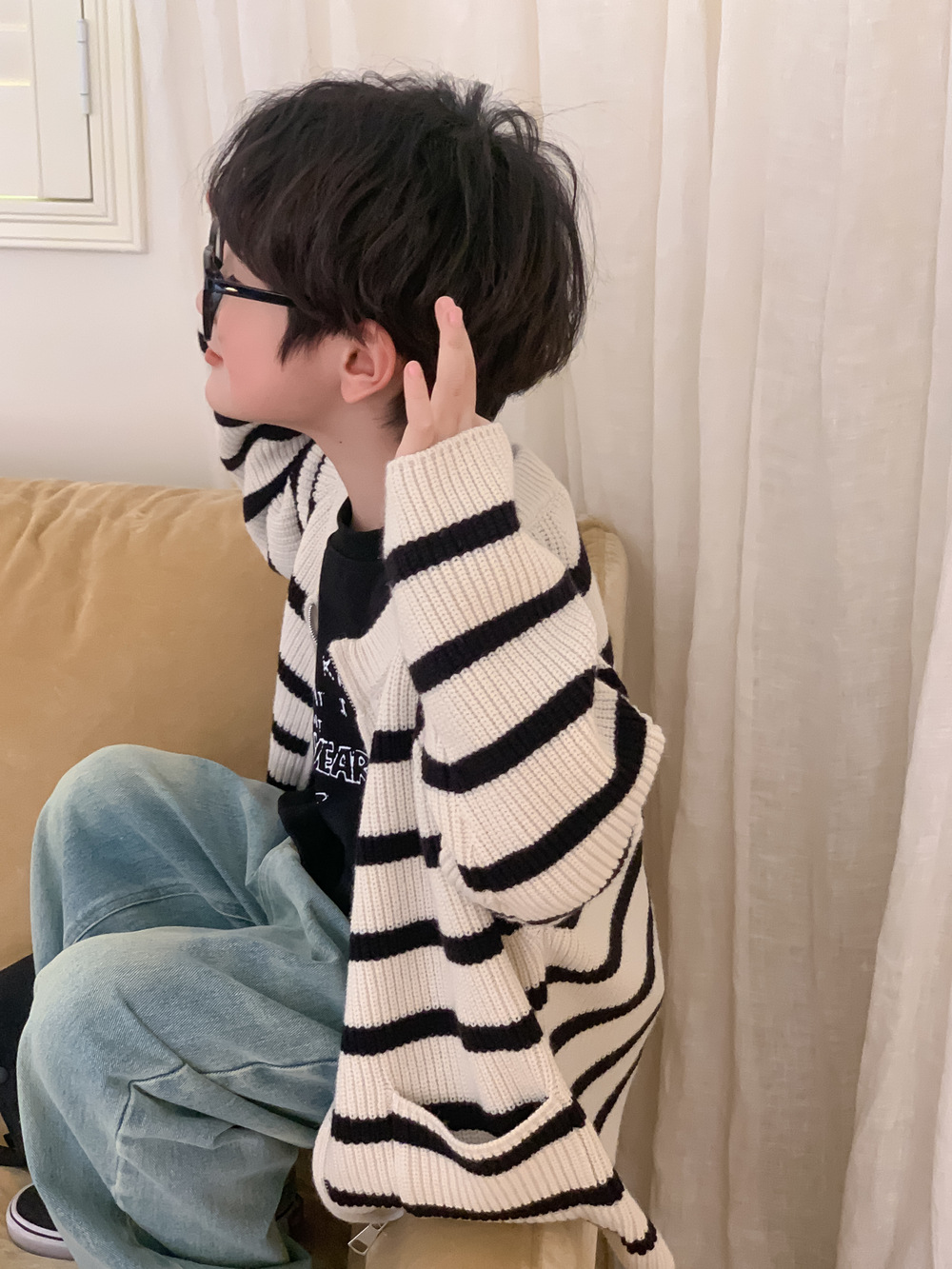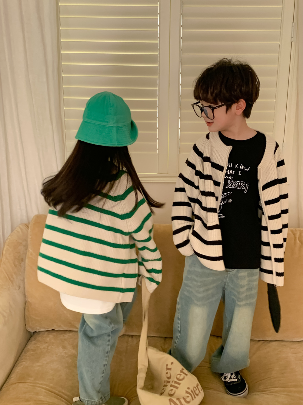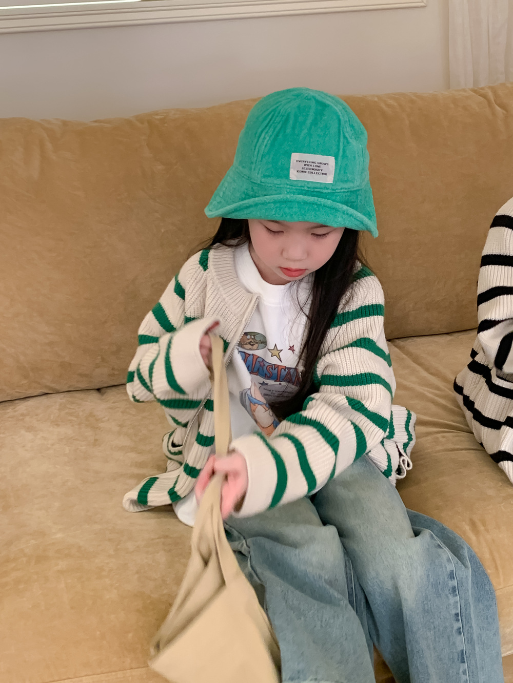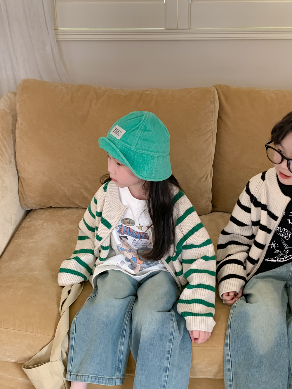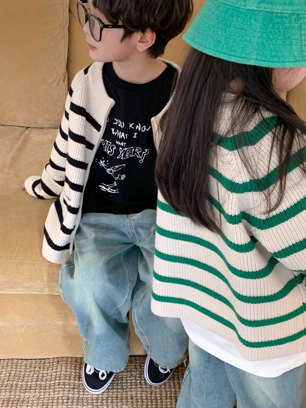 아동 스웨터 2025 가을 스타일 소년 소녀 한국 스타일 지퍼 스트라이프 스웨터 아동 캐주얼 루즈 니트 재킷스토어 가기