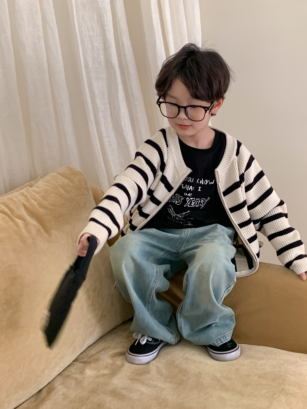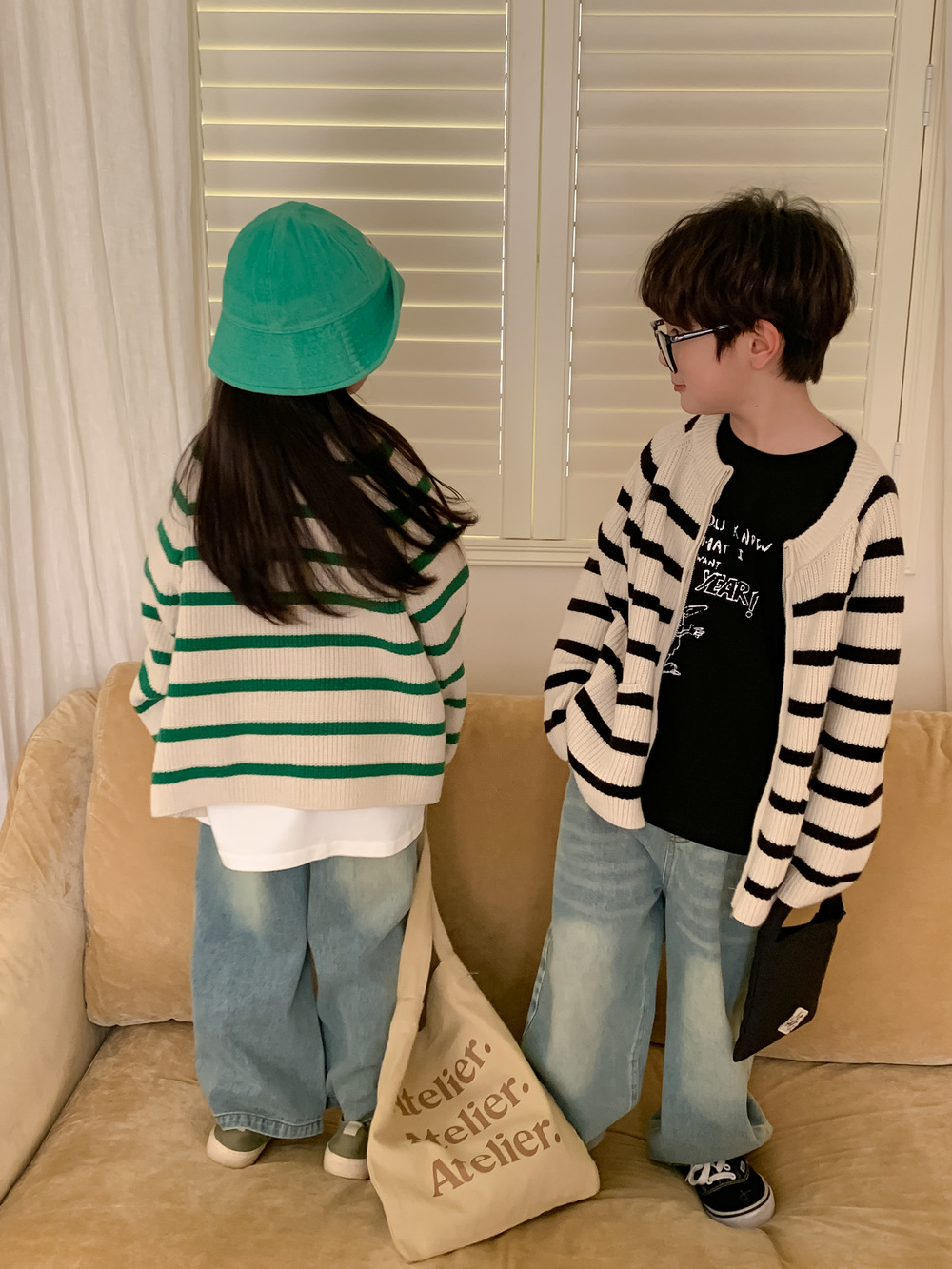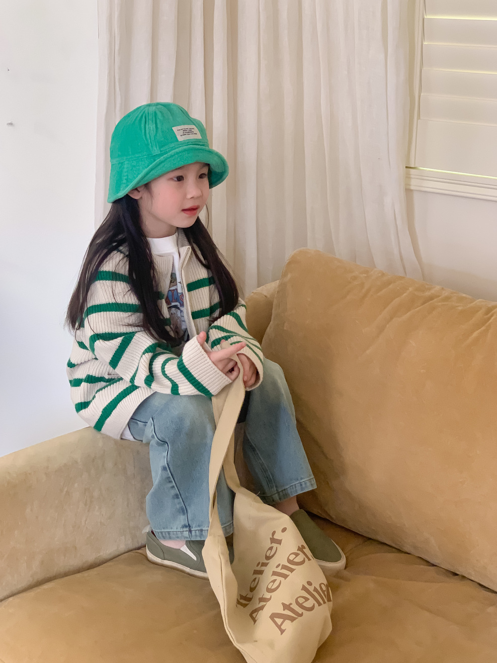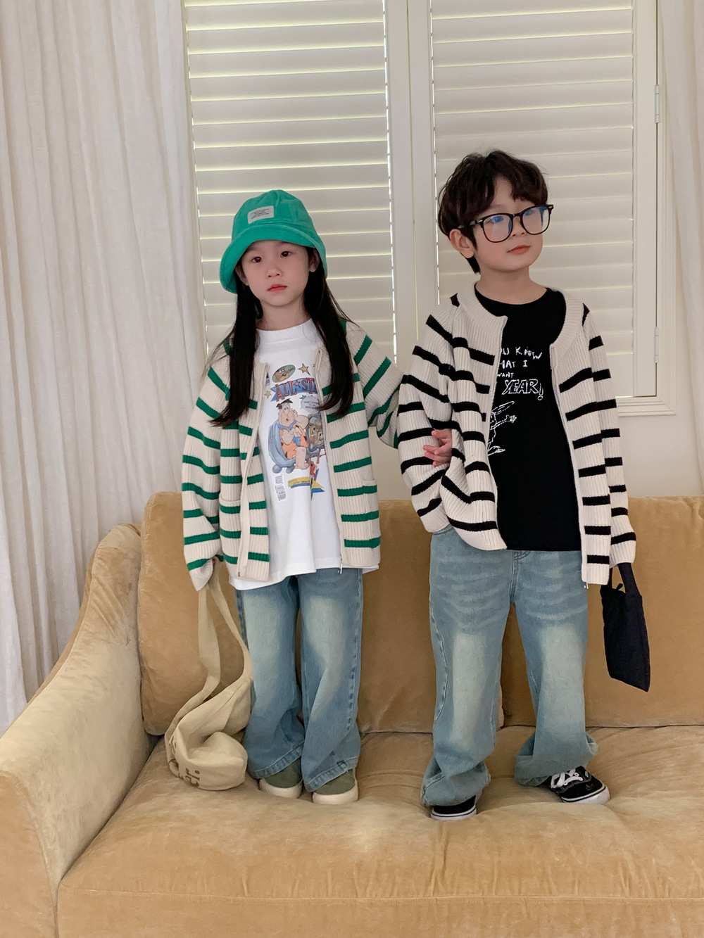 아동 스웨터 2025 가을 스타일 소년 소녀 한국 스타일 지퍼 스트라이프 스웨터 아동 캐주얼 루즈 니트 재킷스토어 가기