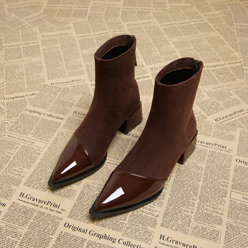 17573-2 여성용 부츠 2025 가을 겨울 슬림 부츠 프렌치 스타일 앵클 부츠 뾰족코 숏부츠