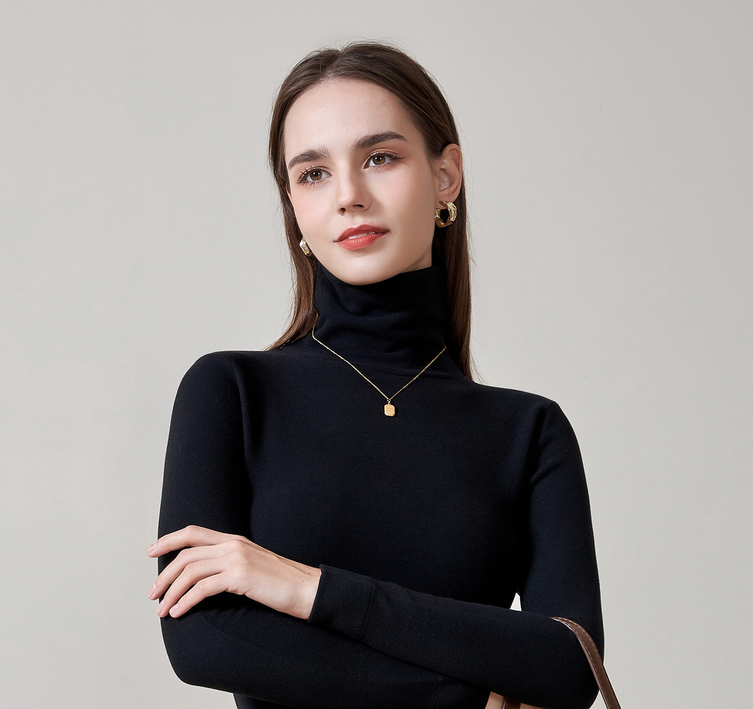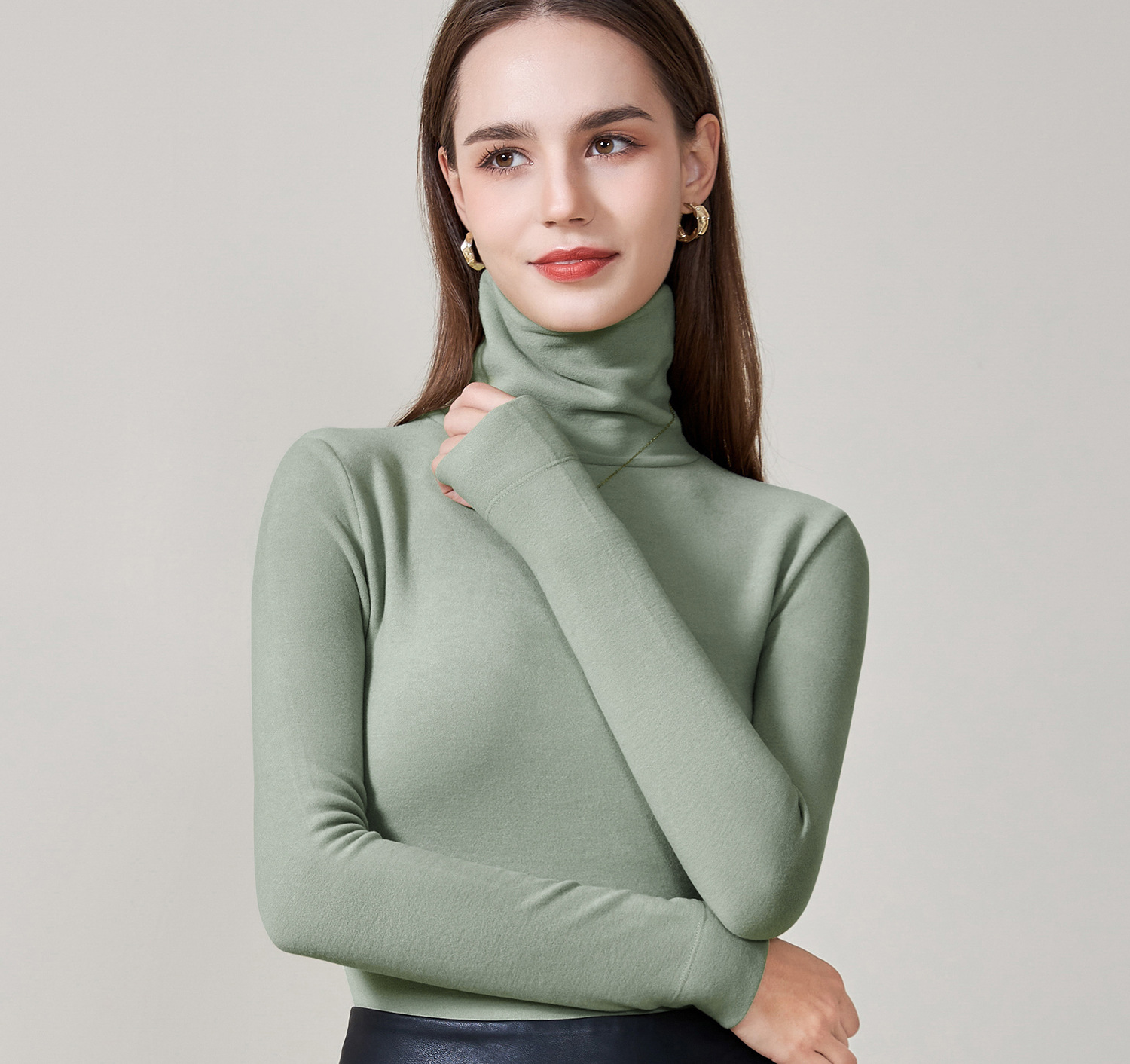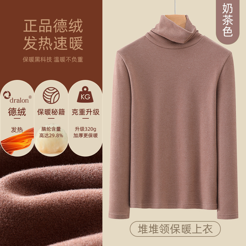 여성용 하이넥 데론 베이스 레이어 2025 가을 겨울 신상 이너웨어 긴팔 티셔츠 양면 기모 슬림핏 탑스토어 가기