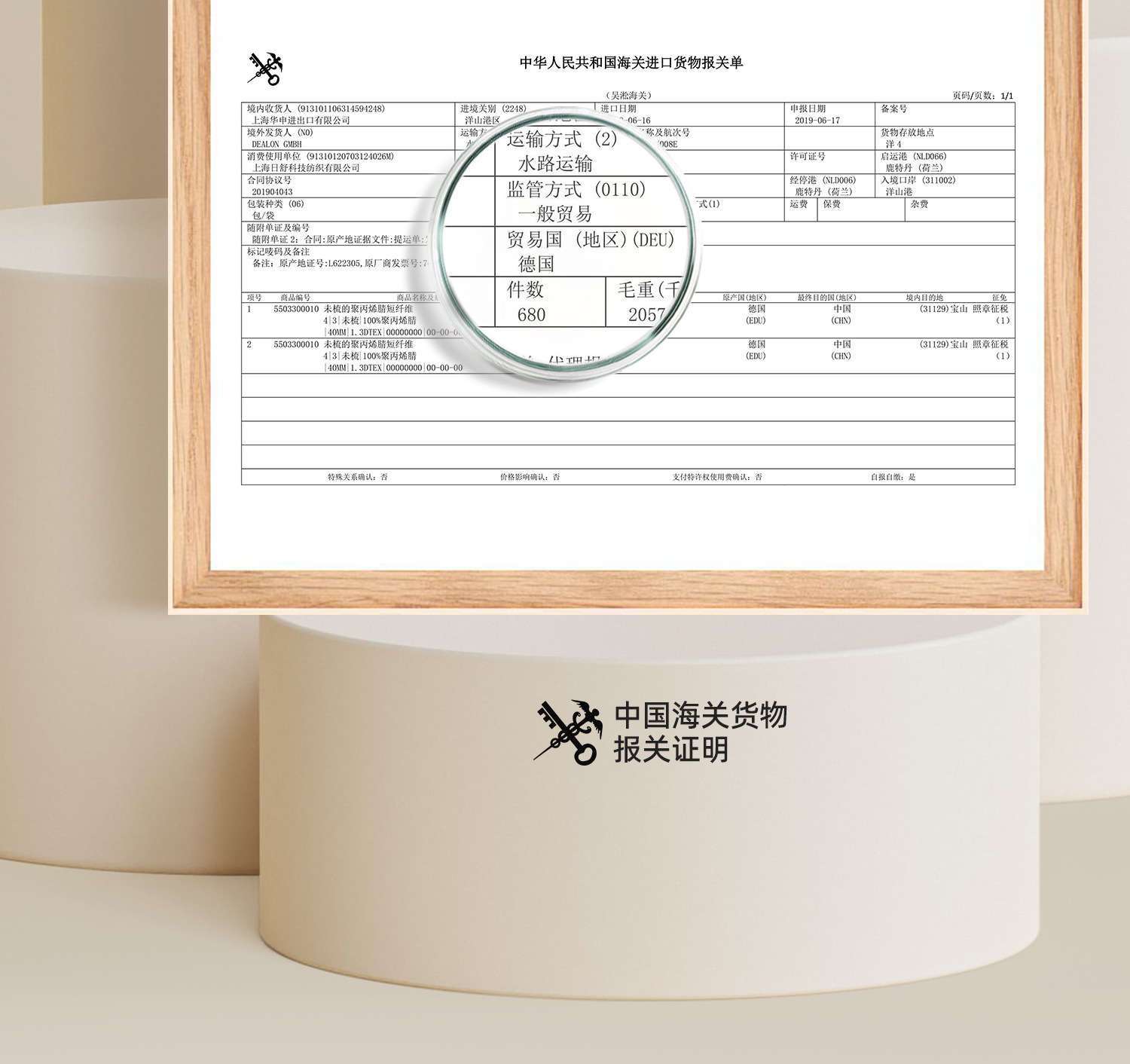 웨이하이센터상호: 威海韩运国际贸易有限公司 法定代表人: 朱 勇奎 统一社会信用代码: 91371000MA3U6XGW6N 进出口: 37109409C6