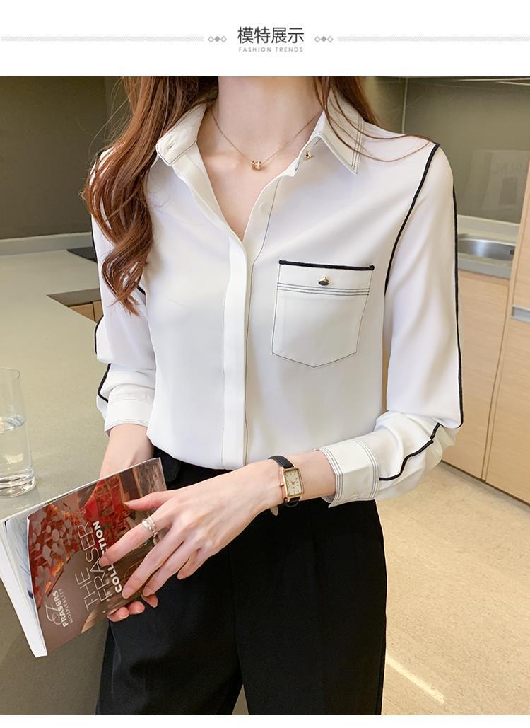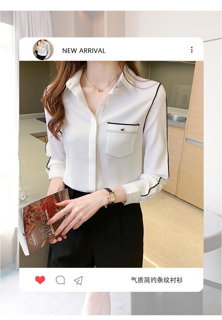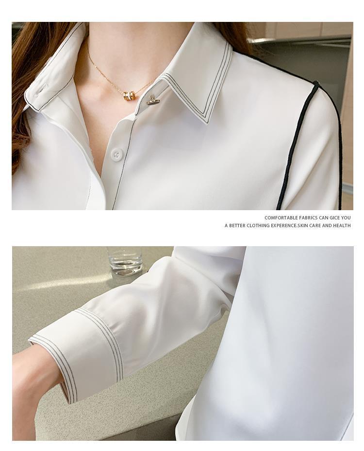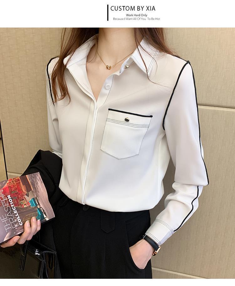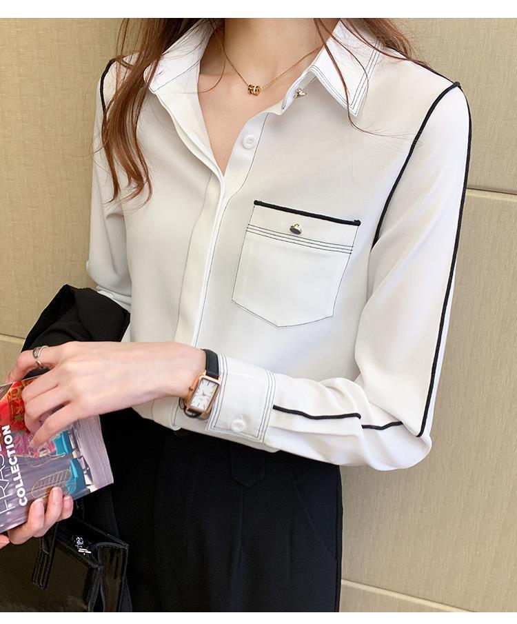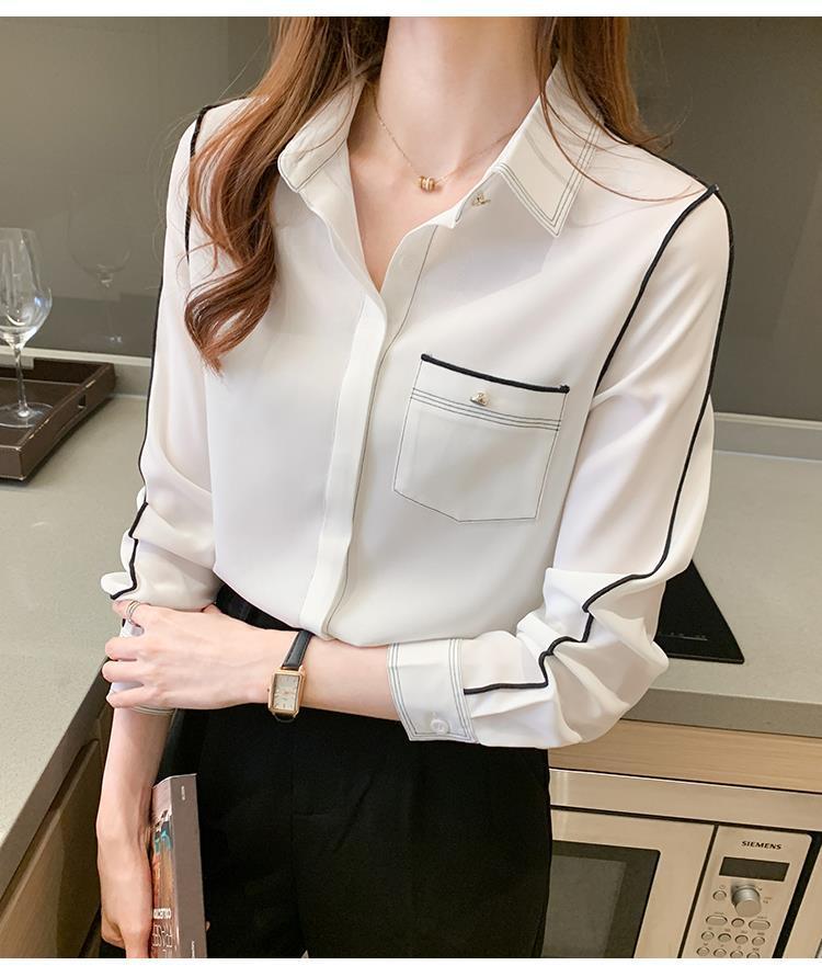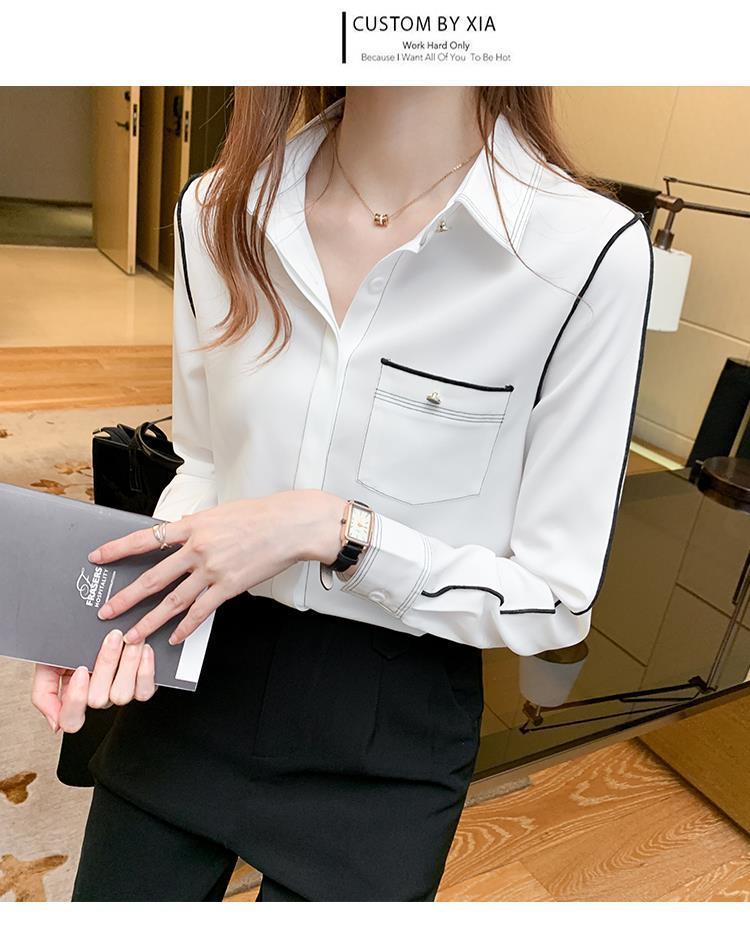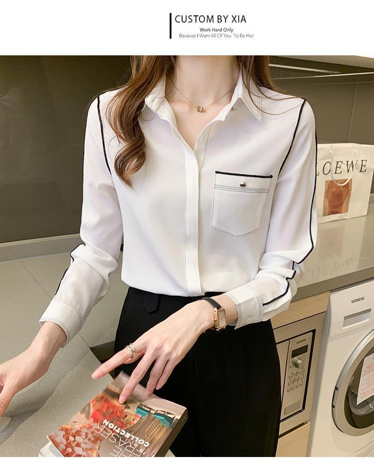 2024 봄 신상 프렌치 스타일 카라 쉬폰 셔츠 여성 긴팔 셔츠 우아한 오피스룩 상의