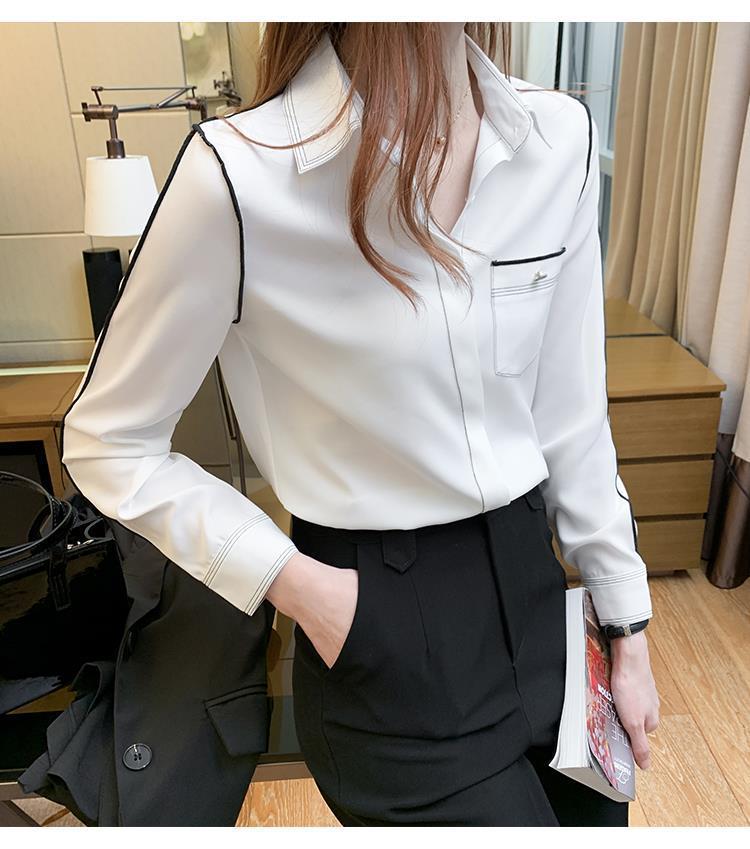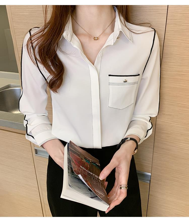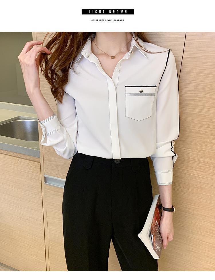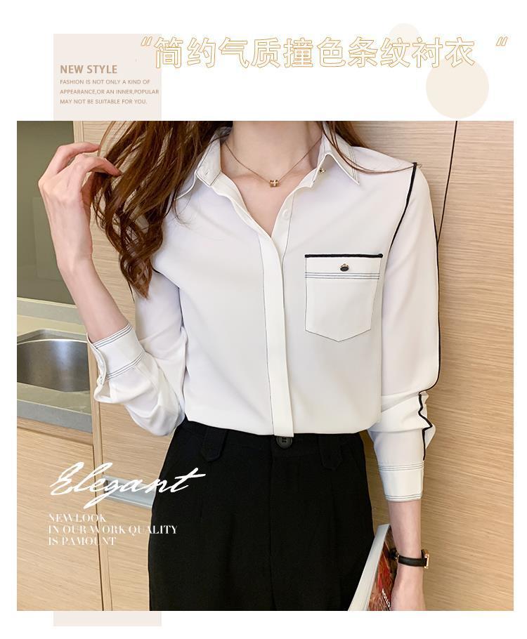 2024 봄 신상 프렌치 스타일 카라 쉬폰 셔츠 여성 긴팔 셔츠 우아한 오피스룩 상의스토어 가기