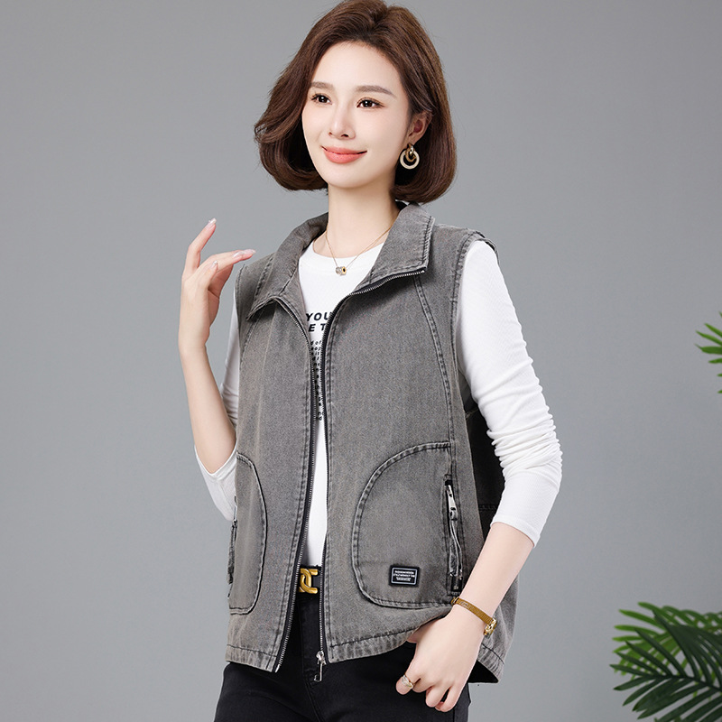 느슨한 캐주얼 여성 조끼 조끼 조끼 플러스 사이즈 중년 및 노인 어머니 여성 의류 봄 배달 7068스토어 가기