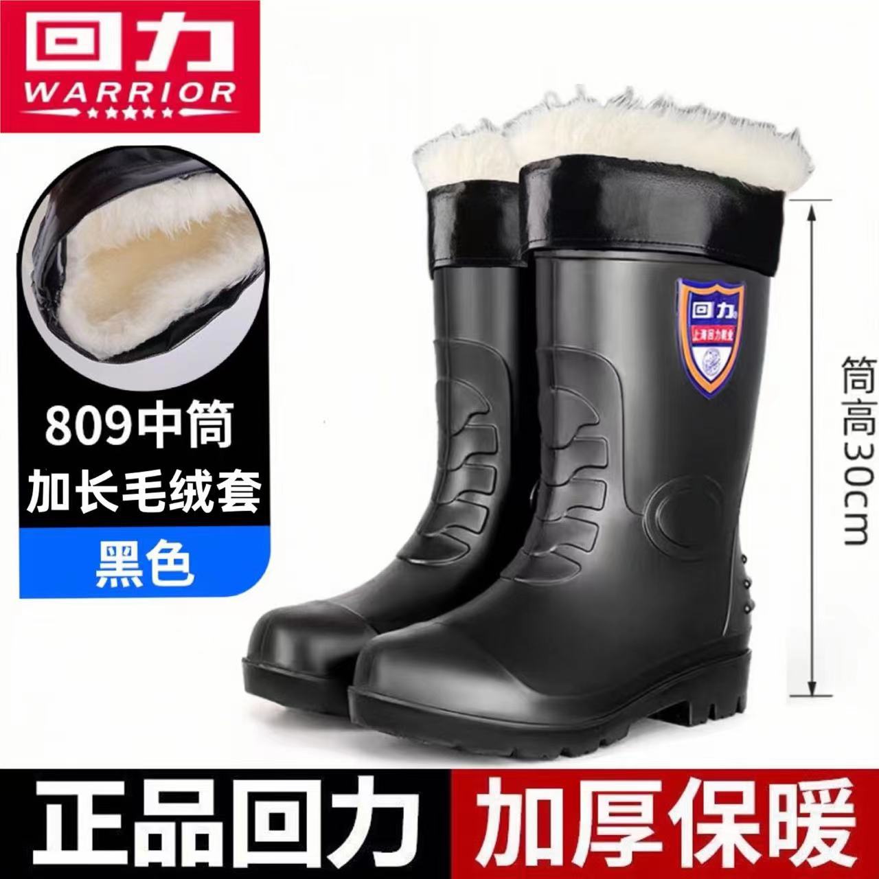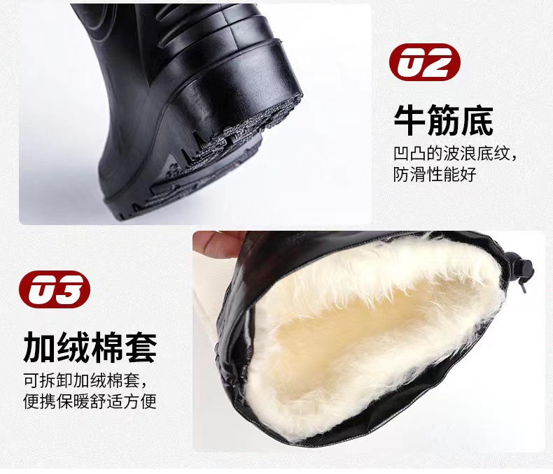 전사 장화 남자 809 물 신발 높은 장화 기모 따뜻한 중급 물 부츠 노동 보호 건설 현장 고무 신발 남성 도매