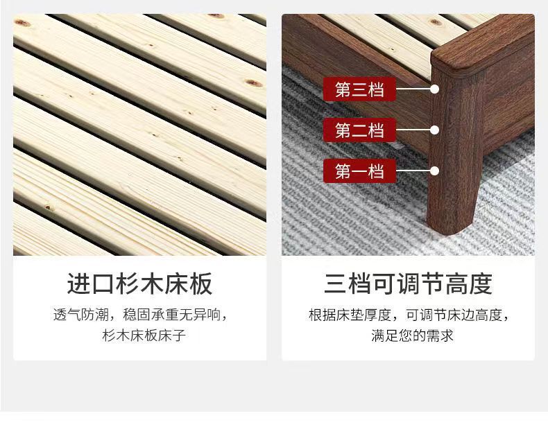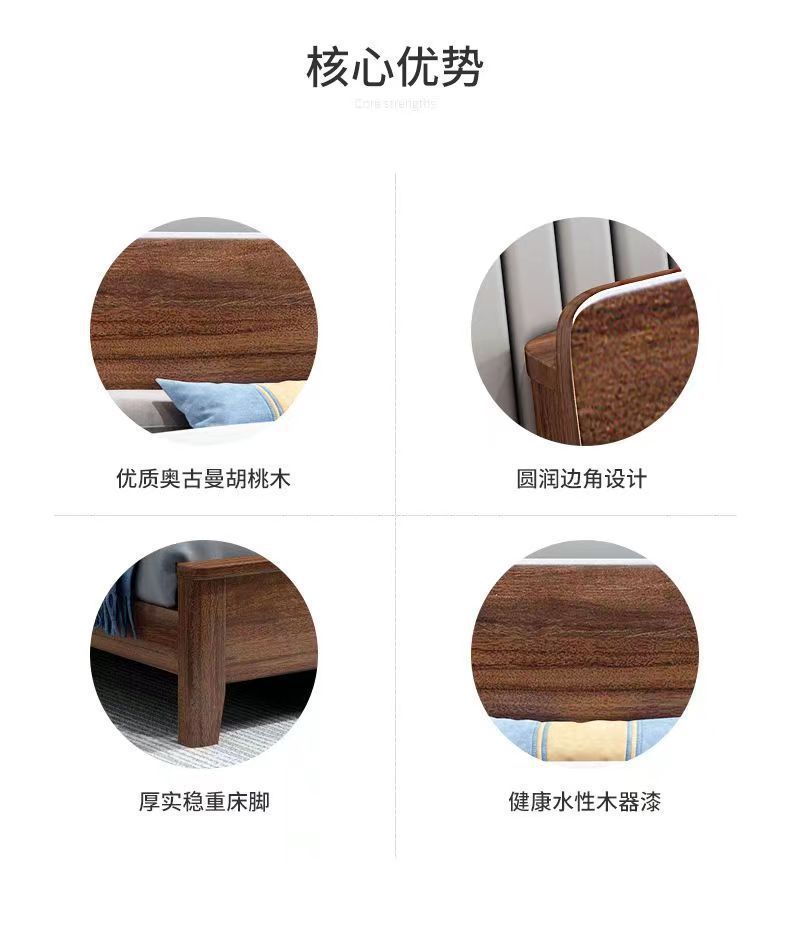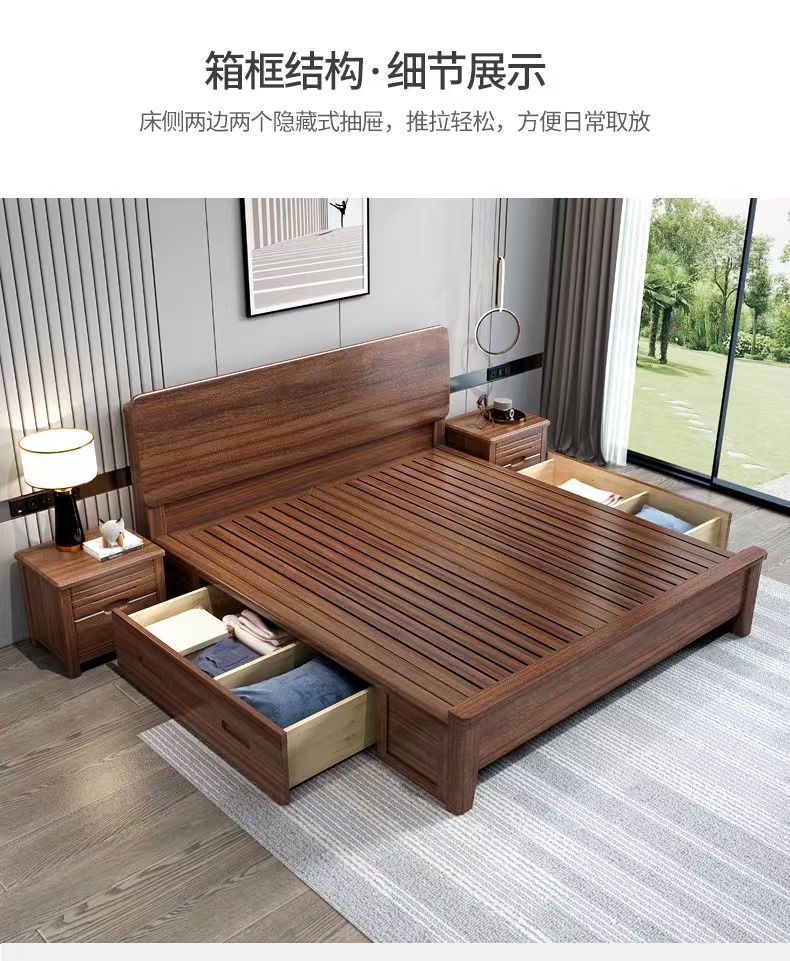 검은 호두 나무 침대 호두 단단한 나무 침대 1.8 m 마스터 침실 더블 침대 현대 1.5 m 1.2m 빛 고급 환경 보호 침대스토어 가기