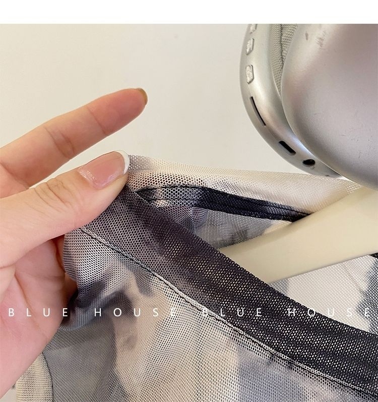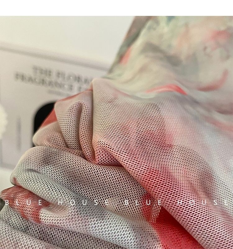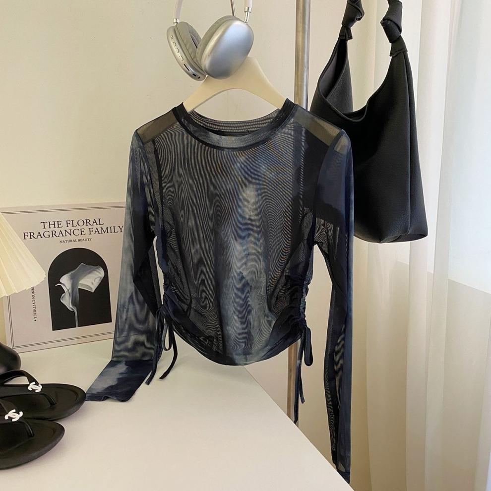 아메리칸 스타일 레트로 달콤한 매운 사이드 드로우 스트링 셔츠 여성용 주름 넥타이-염료 썬 스크린 얇은 슬림-핏 메쉬 탑
