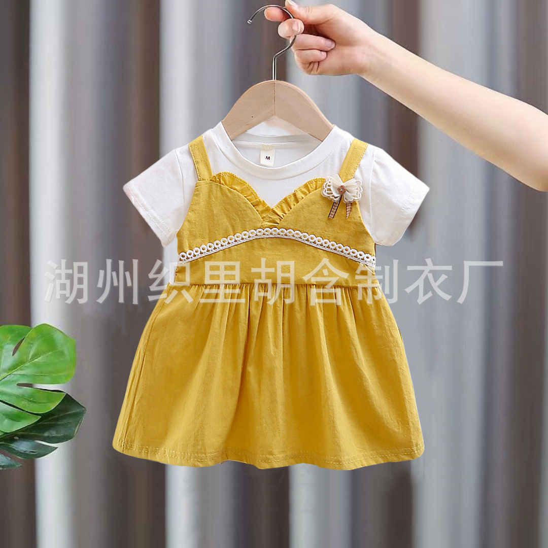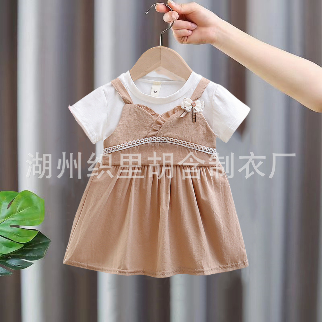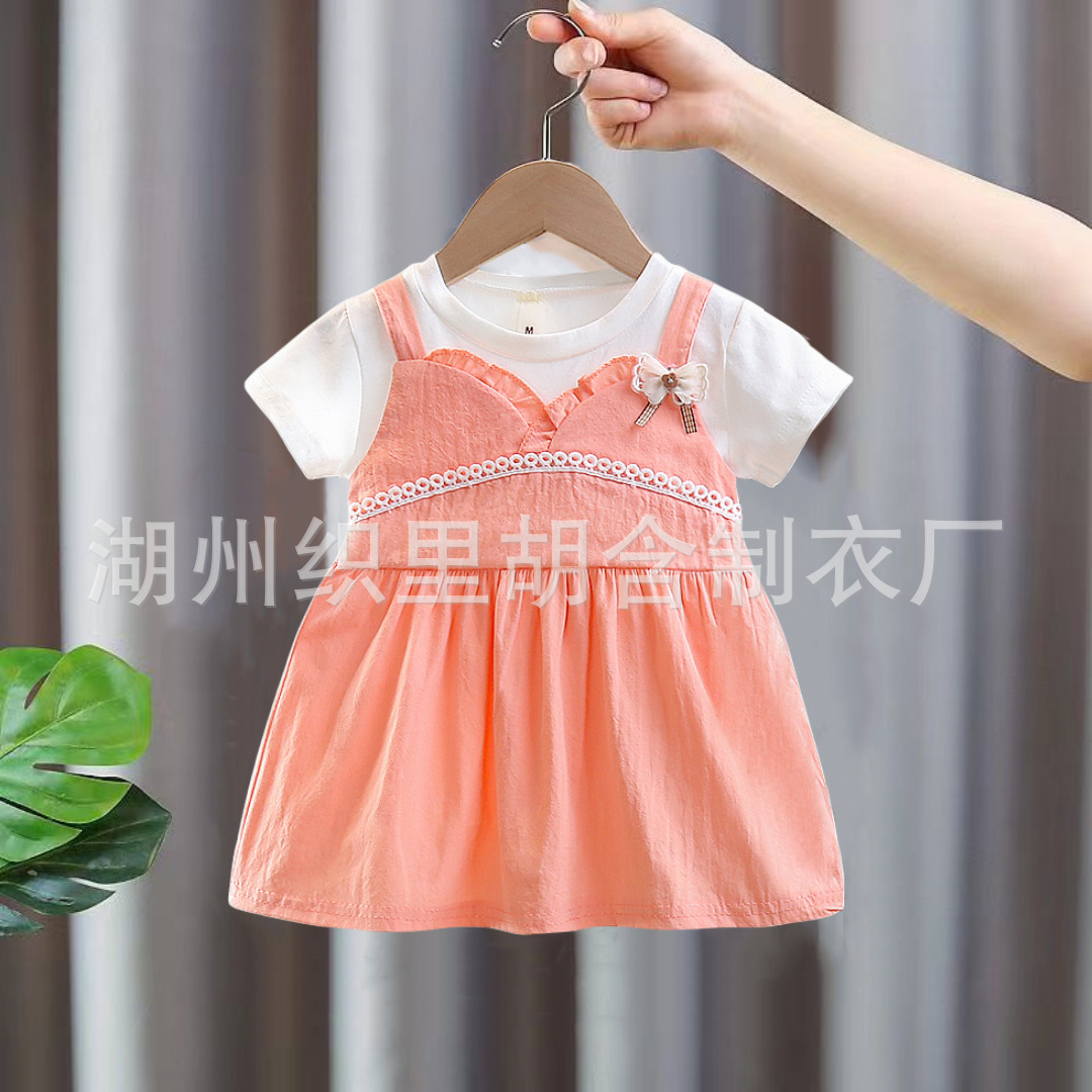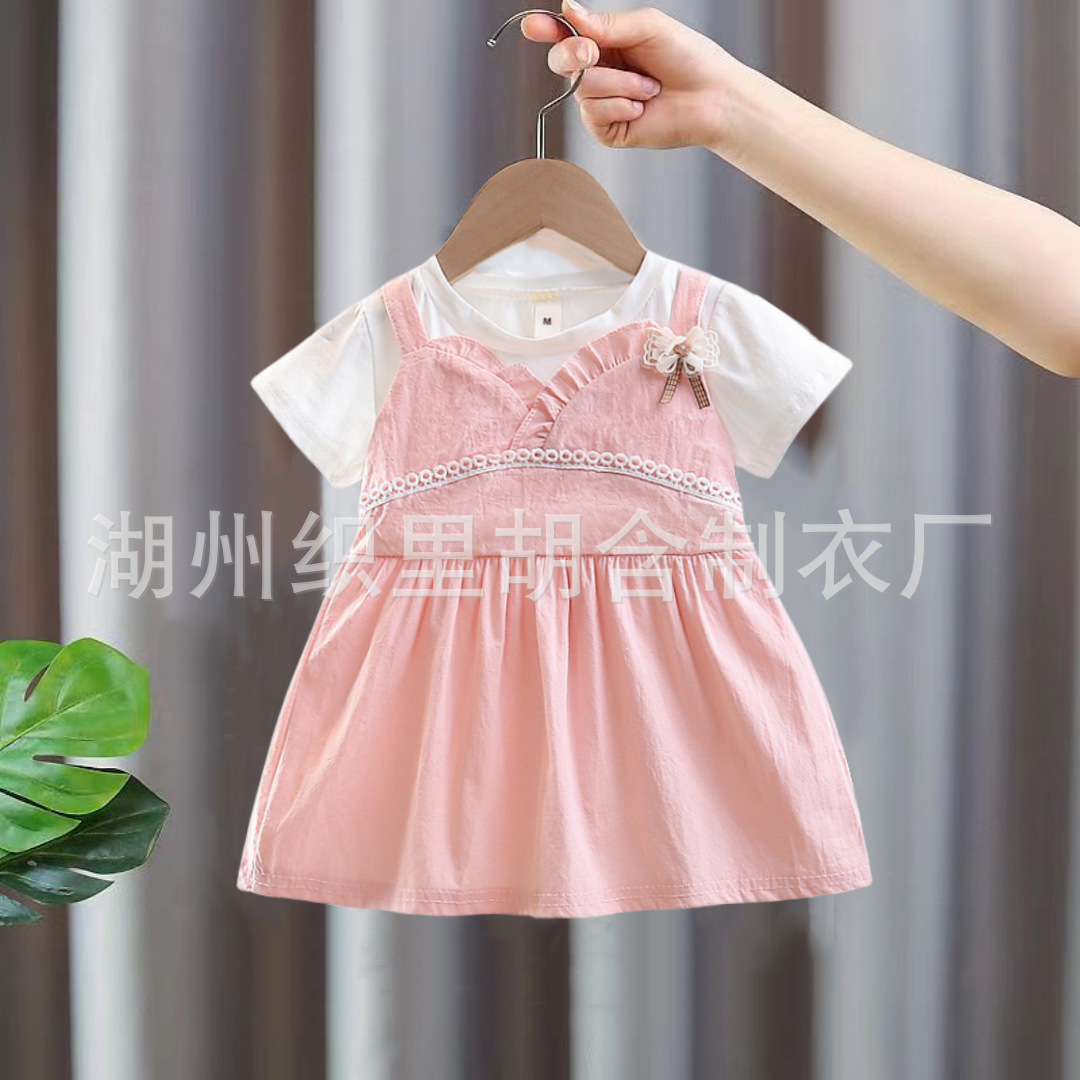 2025 여름 귀여운 아동복 아기 서양식 원피스 가짜 두 소녀 새 반팔 원피스스토어 가기
