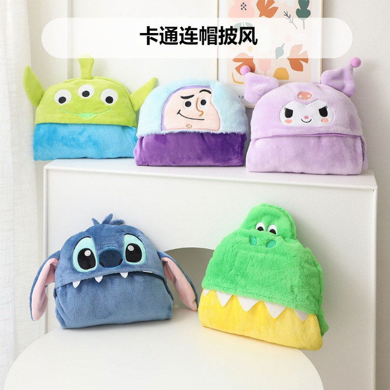 만화 귀여운 스티치 후드 망토 어깨 담요 학생 두꺼운 따뜻한 낮잠 망토 사무실 에어컨 담요스토어 가기