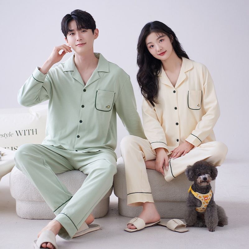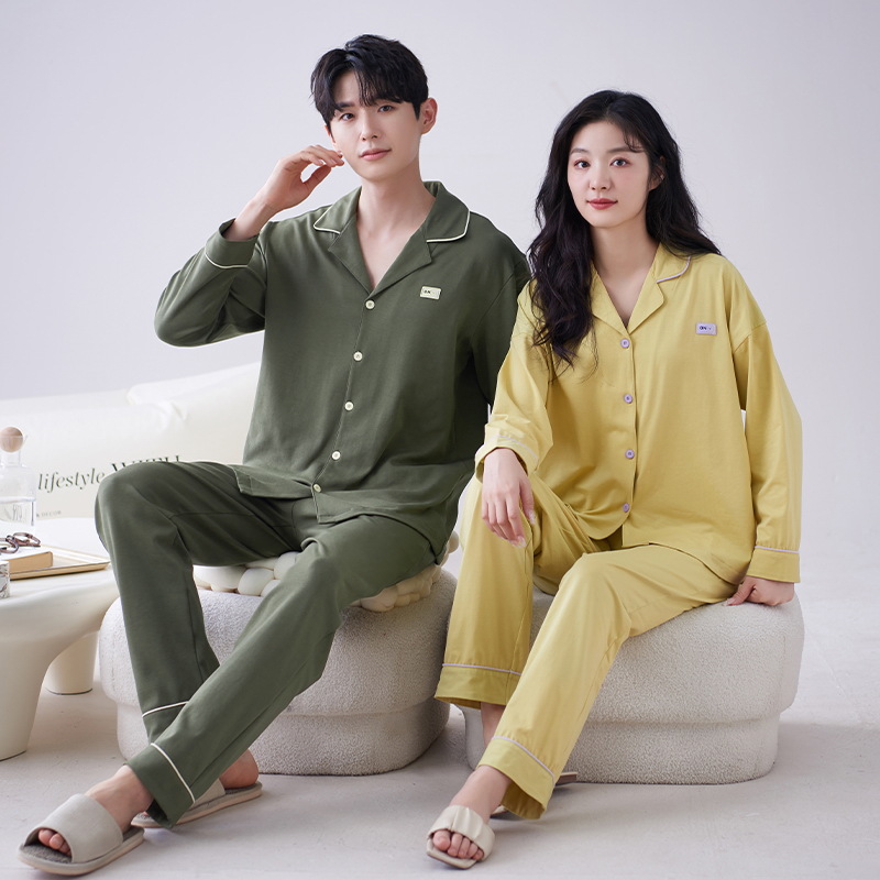 커플 순면 잠옷 봄 가을 신상 2025 남녀 카디건 긴팔 순면 항균 홈웨어 세트스토어 가기