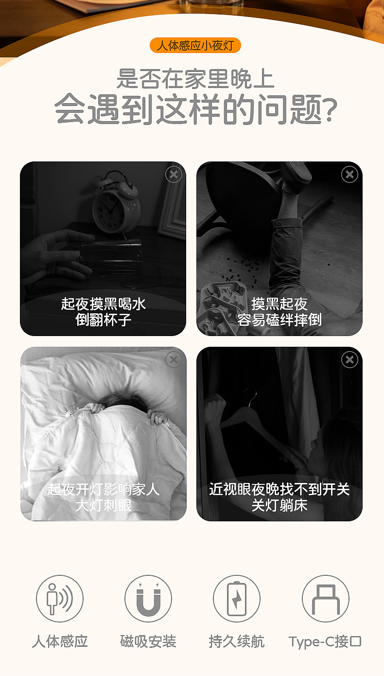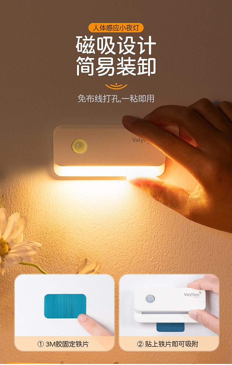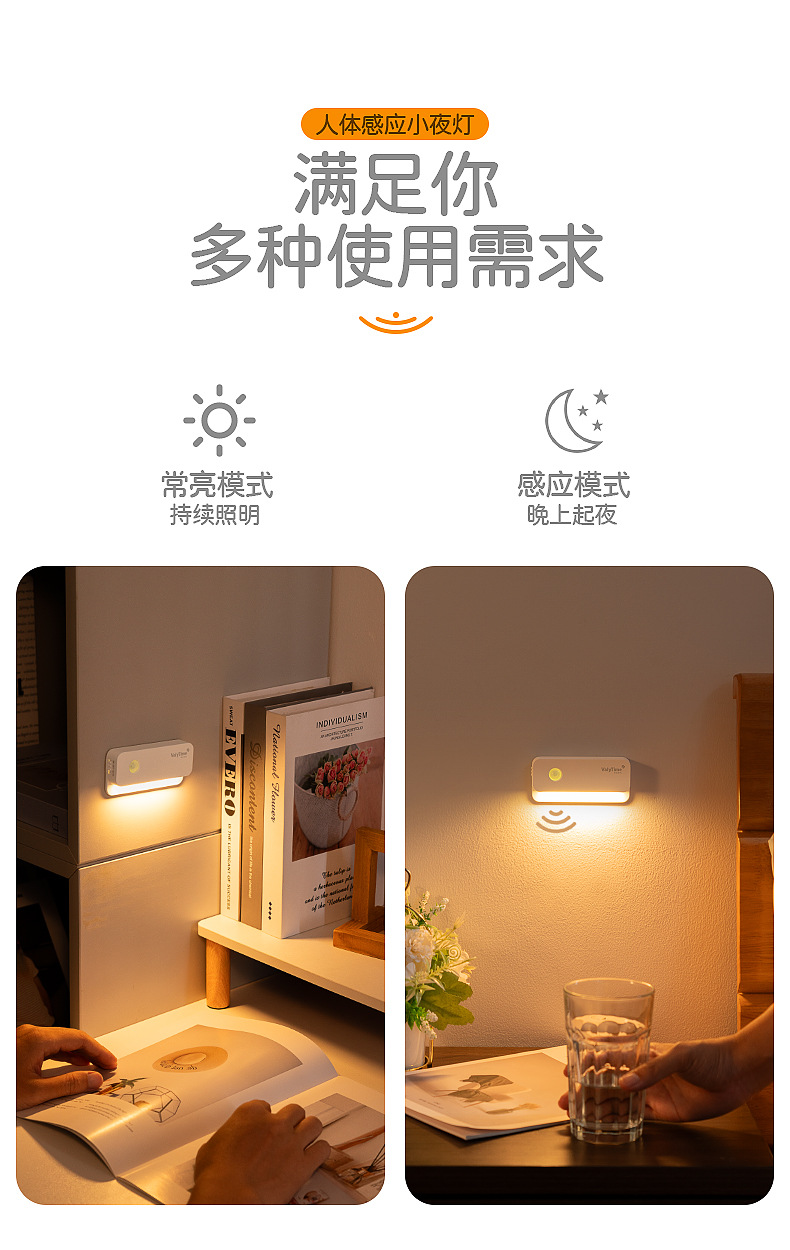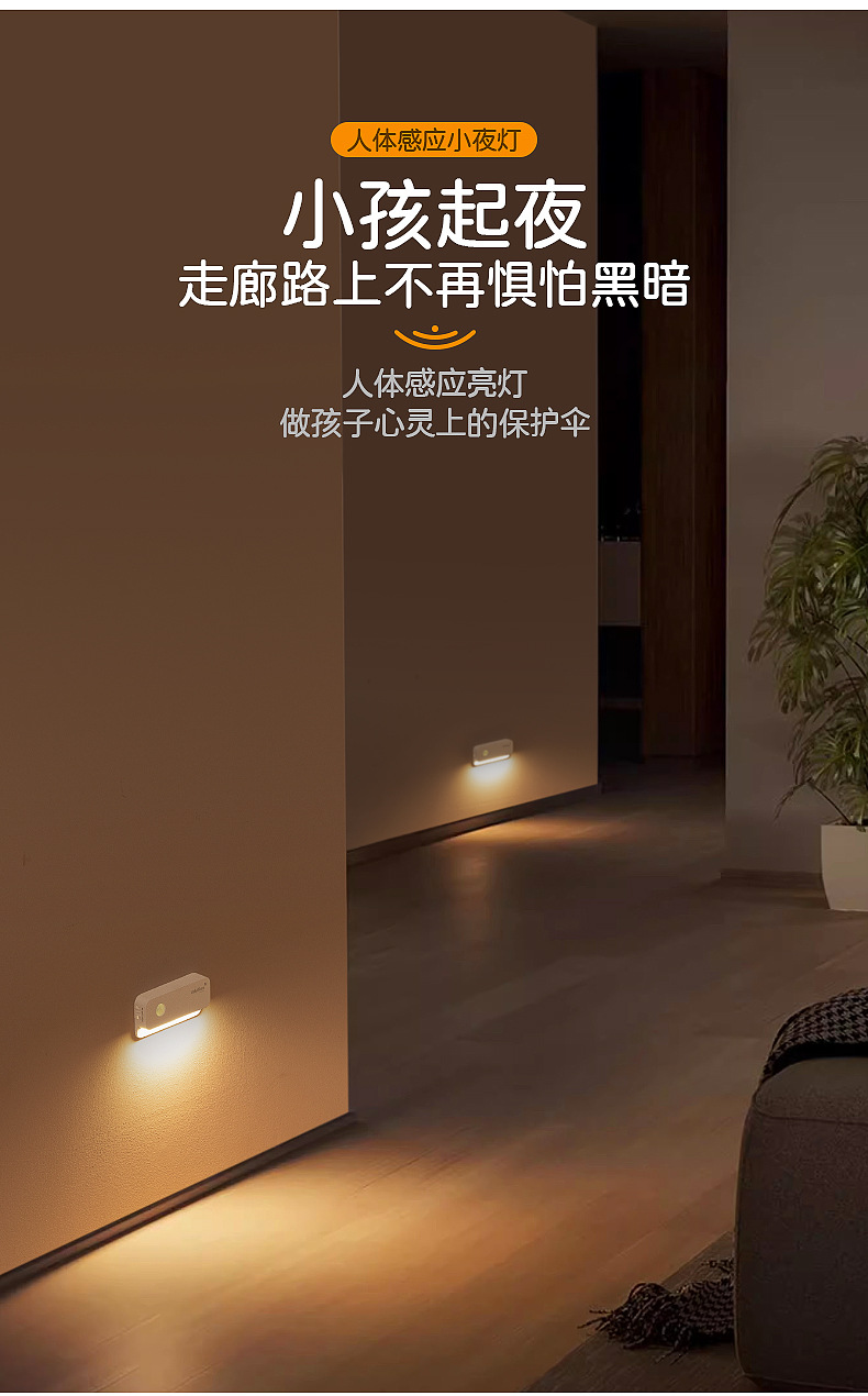 자동 바디 센서 라이트 옷장 측면 빛나는 스마트 계단 통로 자기 흡입 배선 무료 충전 야간 조명 발