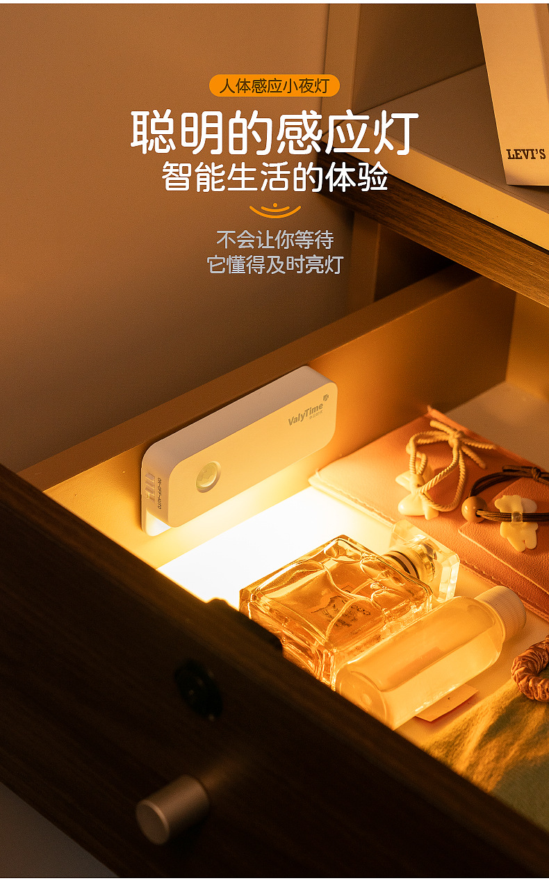 자동 바디 센서 라이트 옷장 측면 빛나는 스마트 계단 통로 자기 흡입 배선 무료 충전 야간 조명 발스토어 가기